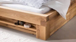 - massive, geradlinige Füße betonen den kantigen Balken-Bettrahmen