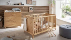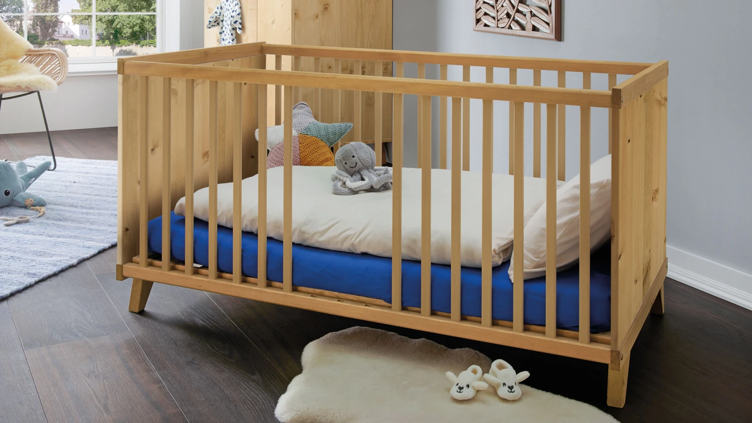 - mit 3 herausnehmbaren Gitterleisten – so entsteht ein „Schlupfloch“, durch das Kleinkinder gefahrlos das Bett verlassen können