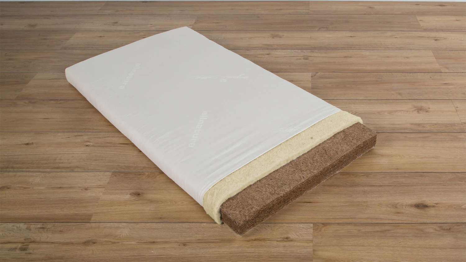 - Matratzenkern aus Kokosfasern (ca. 50 %), mit 100 % Naturkautschuk (ca. 50 %) latexiert