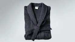 Variante 02 – Bademantel in modischem Anthrazit mit wärmendem Schalkragen und geradem Schnitt, Länge 120 cm - in den Größen S, M und L erhältlich