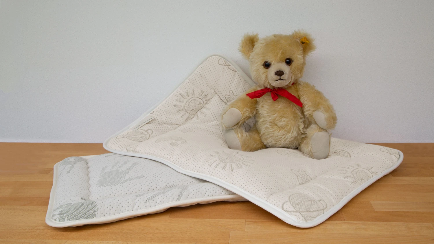 - Oberseite anschmiegsames Jersey-Doppeltuch aus 100 % Bio-Baumwolle/kbA – wahlweise in den Motiven „Sonne & Mond“ und „Hände“