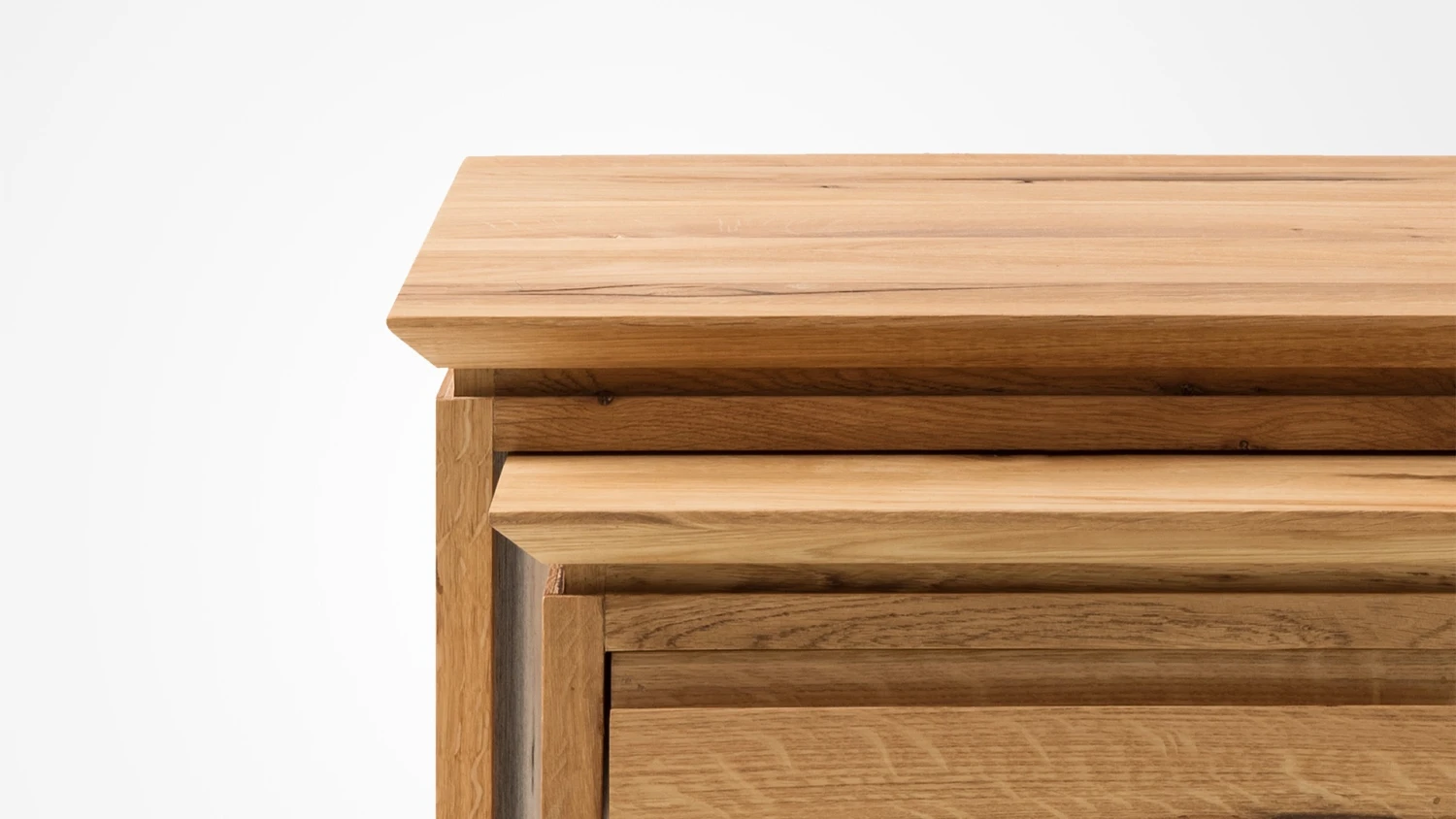 - aus massivem Wildeichenholz, stabverleimt mit durchgehenden Lamellen