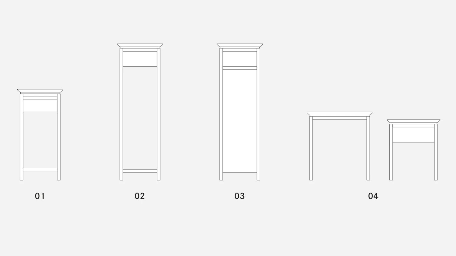 hohe AusfĂĽhrung mit 1 Schublade, darunter 1 offenes Fach - Variante 03