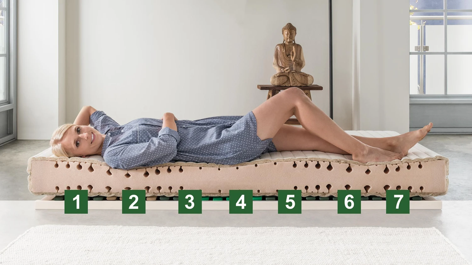 - 7-Zonen-Körperstützsystem für körpergerechte Entlastung in der Schulterzone und sinnvolle Unterstützung im Becken- bzw. Hüftbereich