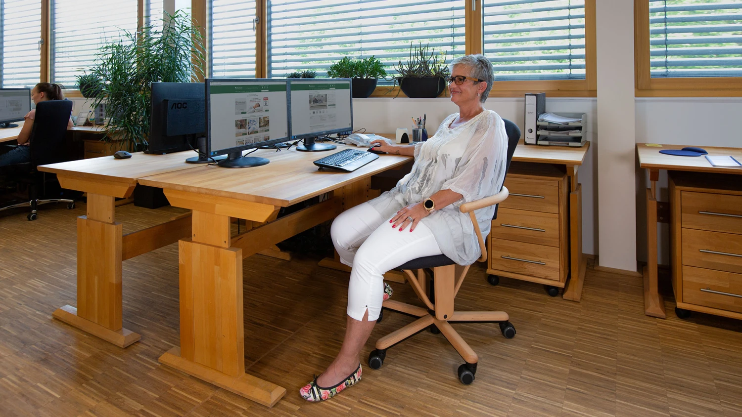 - drehbarer Schreibtisch-Bewegungsstuhl fĂĽr ergonomisch sinnvolles, dynamisches Sitzen