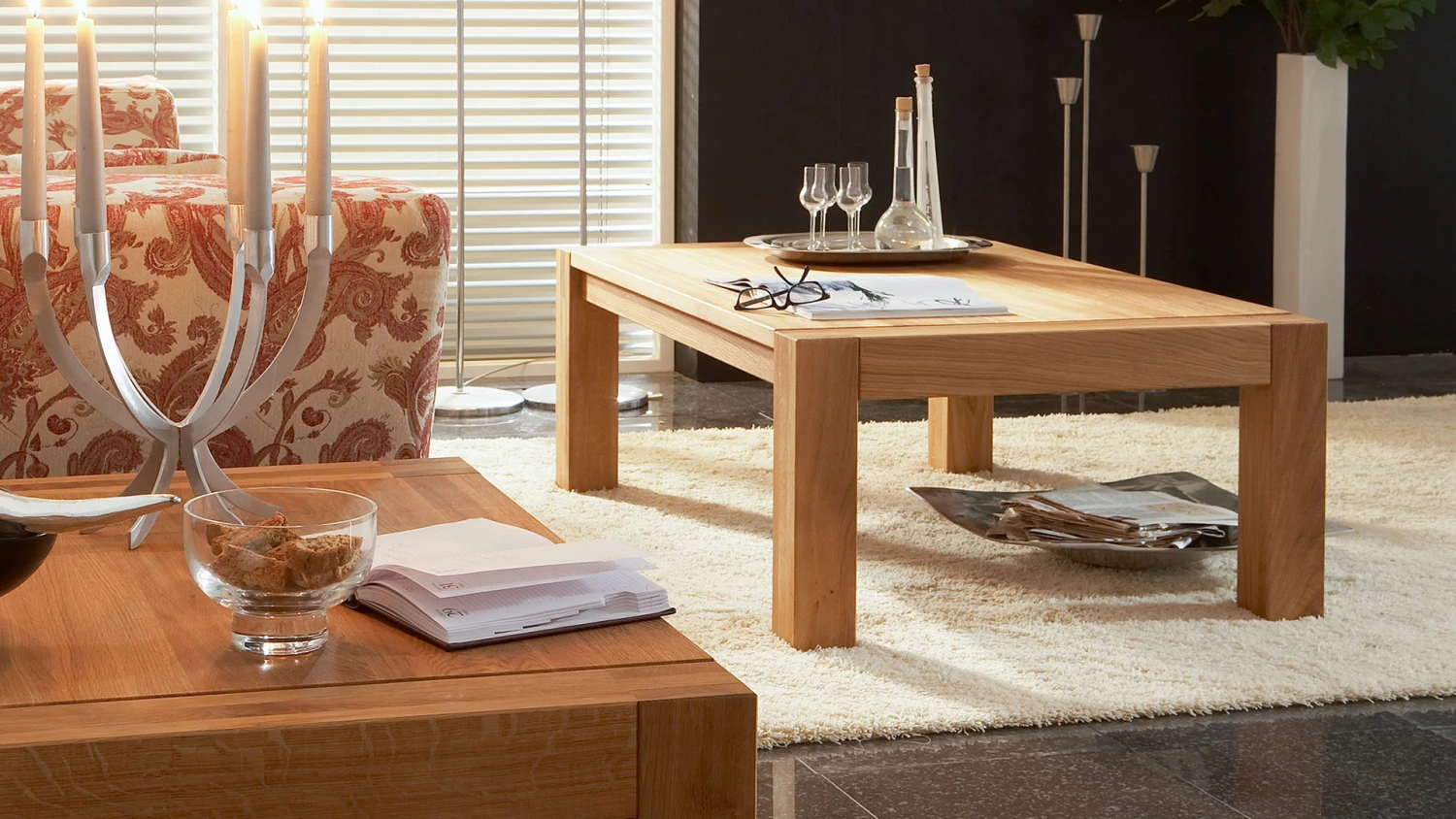 - aus massivem Kernbuchen– oder Nussbaumholz, aufwändig stabverleimt mit durchgehenden Lamellen