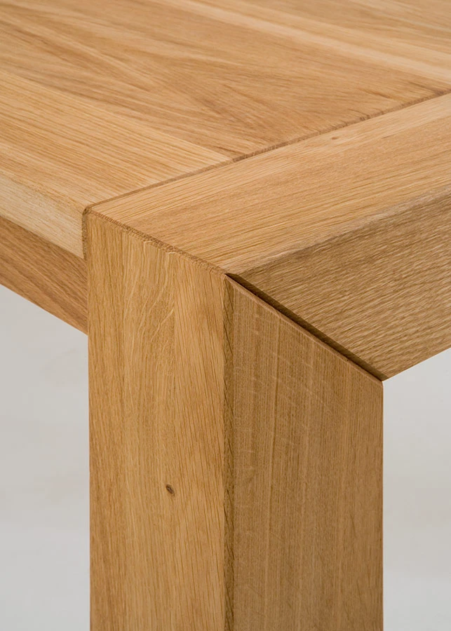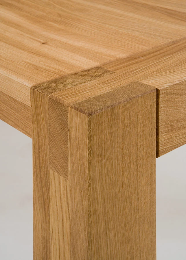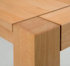 - wahlweise 3 Eckverbindungen erhältlich – bei A ist das Tischbein von oben sichtbar eingearbeitet, bei B ist die Verbindung sorgfältig auf Gehrung gearbeitet, bei C sind Tischbein und Tischplatte aufwändig verzinkt
