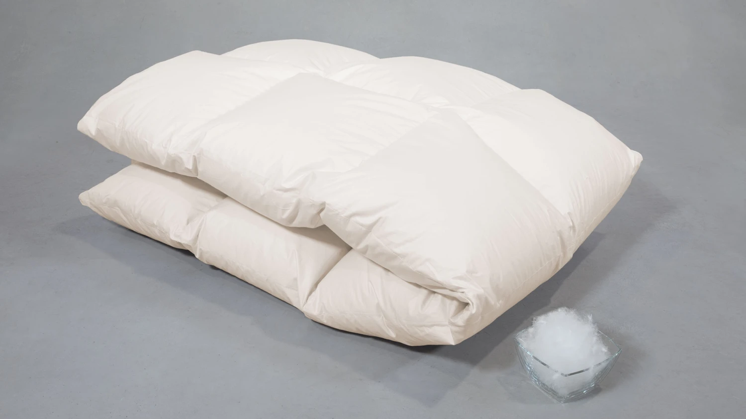 - Füllung weiße deutsche neue Bio-Gänsedaunen und Federn/kbT, Klasse 1, 90 % Daunen, 10 % Federn, ungebleicht