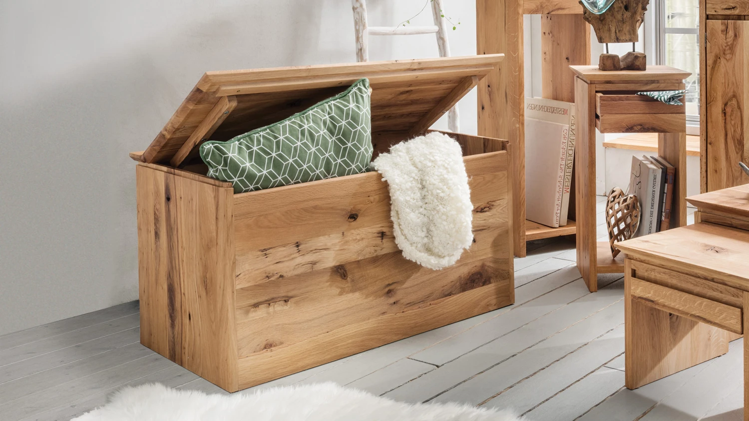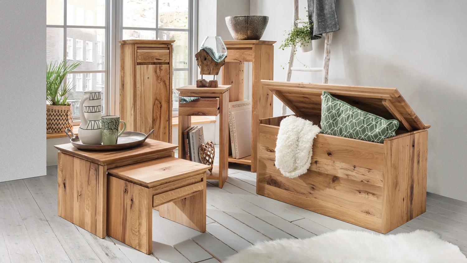 - aus massivem Wildeichenholz, stabverleimt mit durchgehenden Lamellen