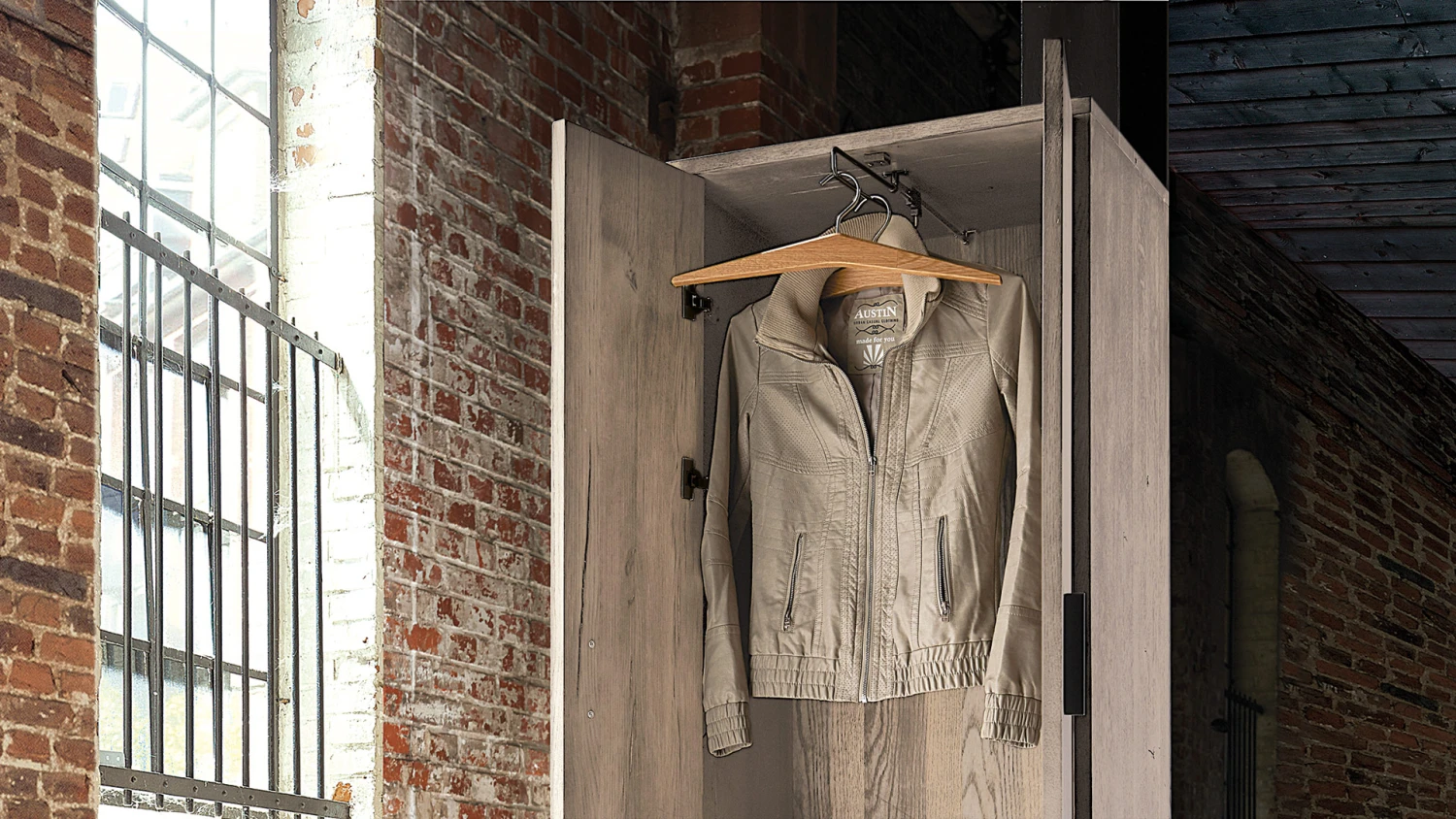 - mit 2 DrehtĂĽren, dahinter 1 nach vorne ausziehbare Kleiderstange, darunter 2 Schubladen – MaĂźgrafik anzeigen