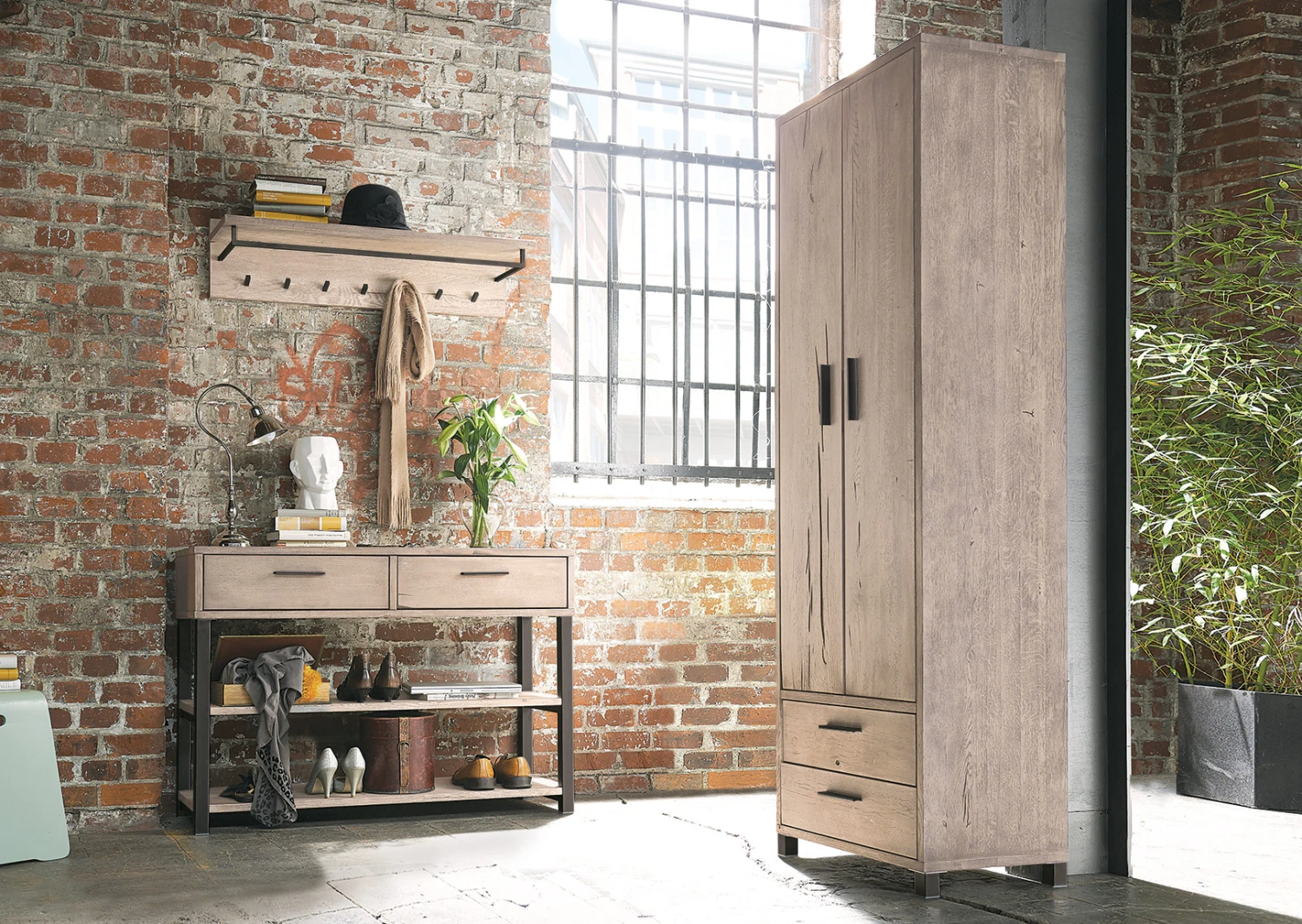 - Industrie-Stil natĂĽrlich interpretiert – hier trifft charaktervolles Massivholz auf markanten schwarzen Stahl