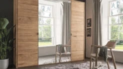 - modern geradliniger, aufwändig gearbeiteter Kleiderschrank mit schönen Kontrasten