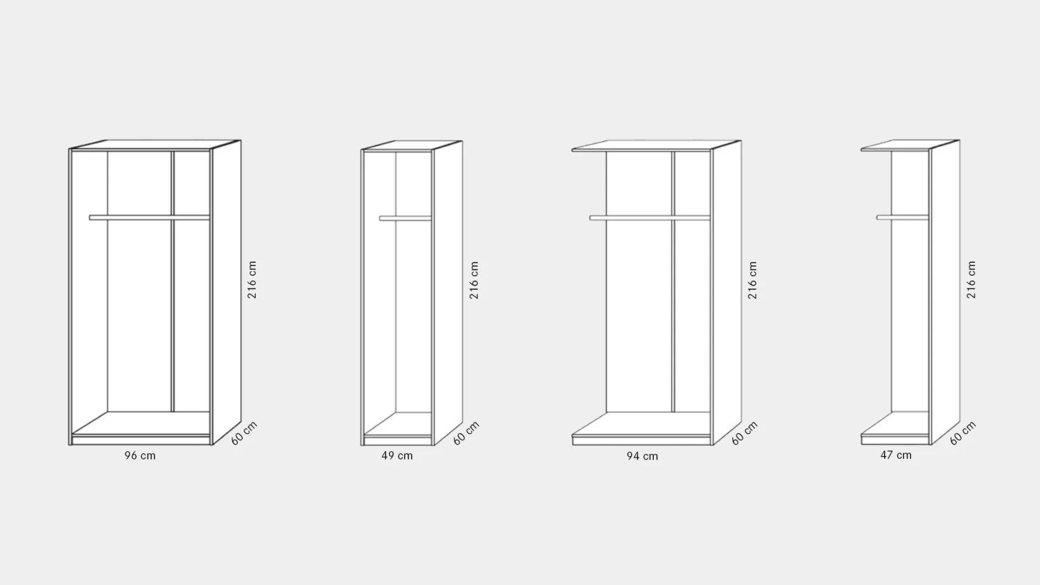 - Endlos-Schranksystem – Kleiderschrank aus Einzelmodulen individuell kombinierbar, Basis für Ihren Kleiderschrank ist immer ein Grundmodul