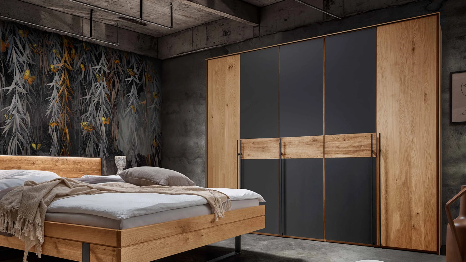 mit 4 Drehtüren (Holz/Anthrazitglas) und 1 Mittelwand