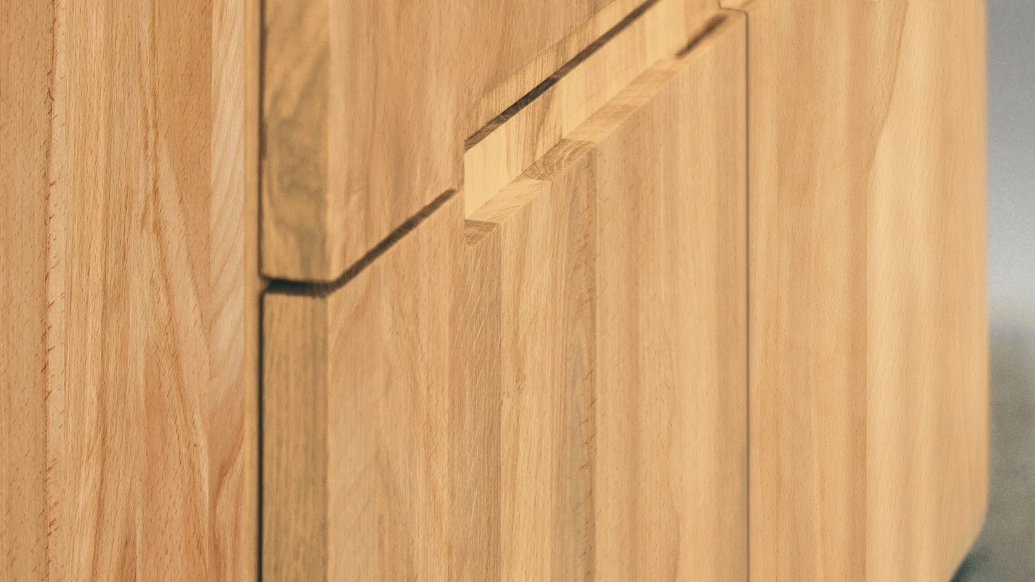 - geradlinige Türen mit markanten, an den Innenkanten angebrachten Griffmulden