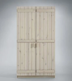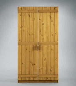 - schöner Kleiderschrank mit lebhaft strukturierten Fronten in „Zaunlatten“-Optik