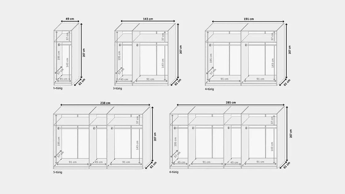 - Kleiderschrank in 5 Varianten erhältlich