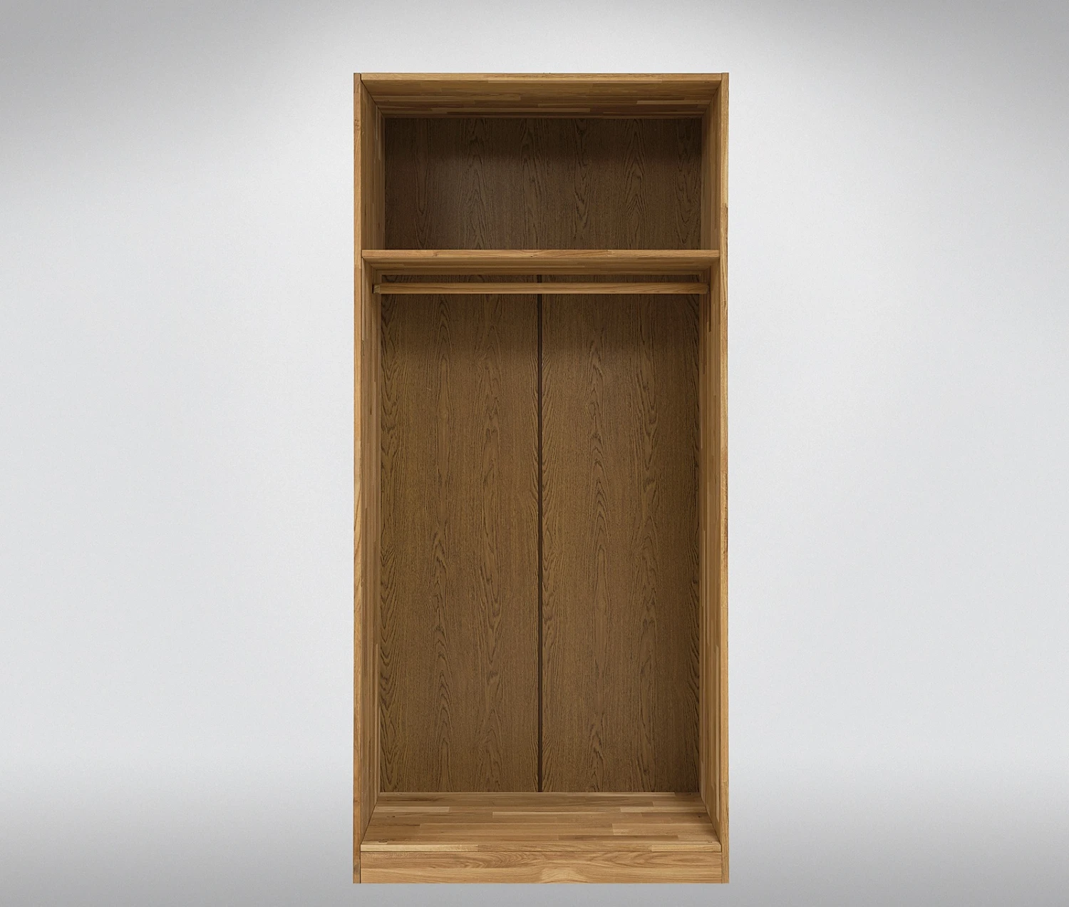 1 schmales Schrankelement mit 1 kurzen Einlegeboden und 1 kurzen Kleiderstange