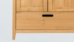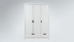 links 1 kurze Kleiderstange, rechts 3 kurze Einlegeböden, darunter 1 breite Schublade - 3-türiger Schrank