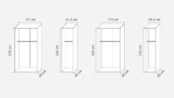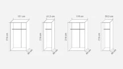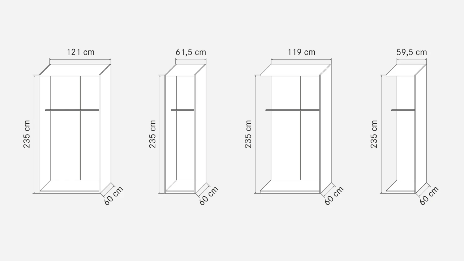 - Module in jeweils 4 Breiten und 2 Rastermaßen erhältlich – in den Maßgrafiken erhalten Sie auch Informationen zur Inneneinteilung