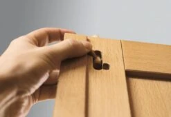 - formschöne quadratische Türgriffe mit komplett metallfreiem Schließmechanismus