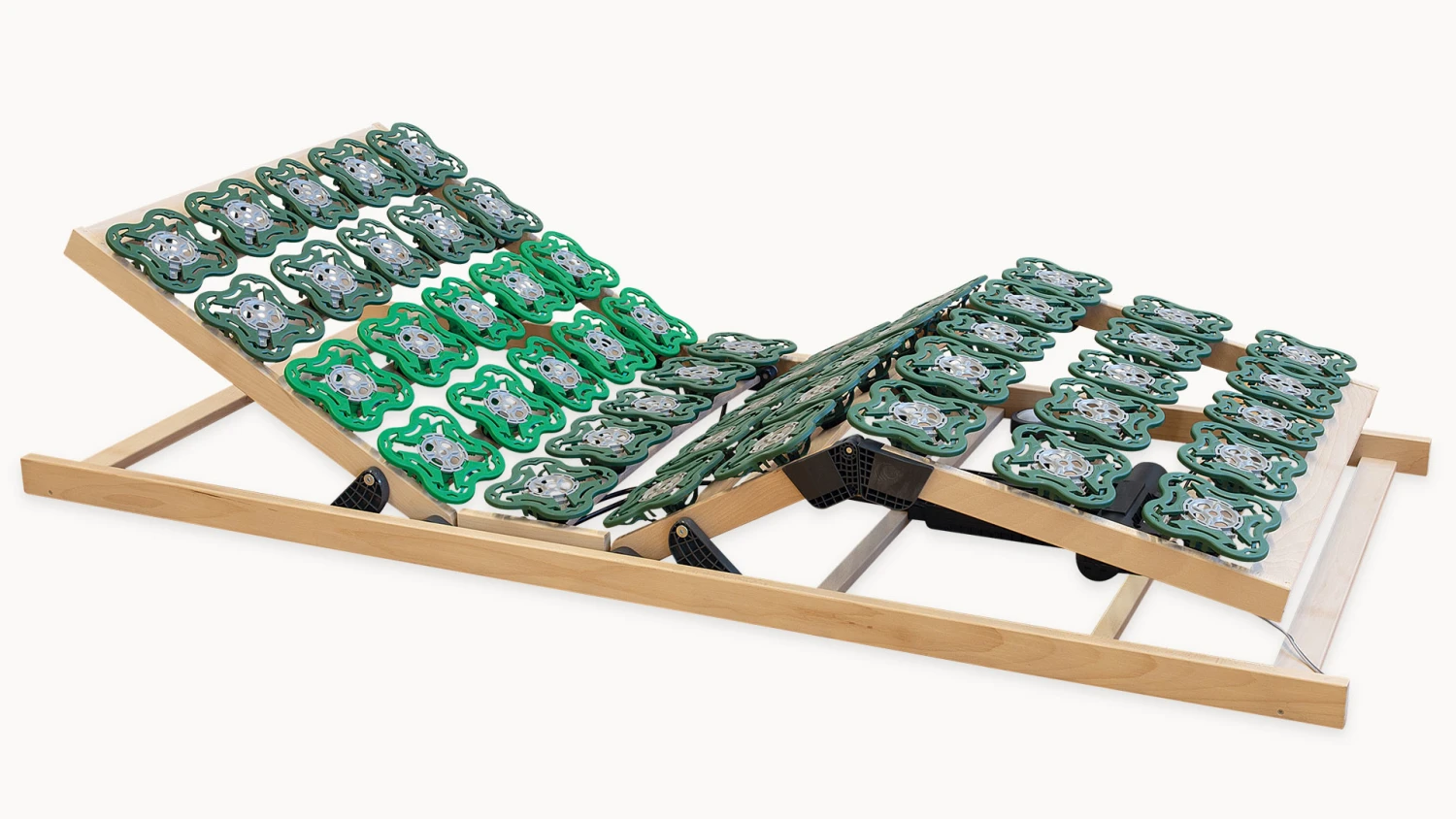 - Teller aus hochwertigem, strapazierfähigem Kunststoff, gelagert auf überwölbten, 7-fach verleimten Federleisten aus Buchenholz