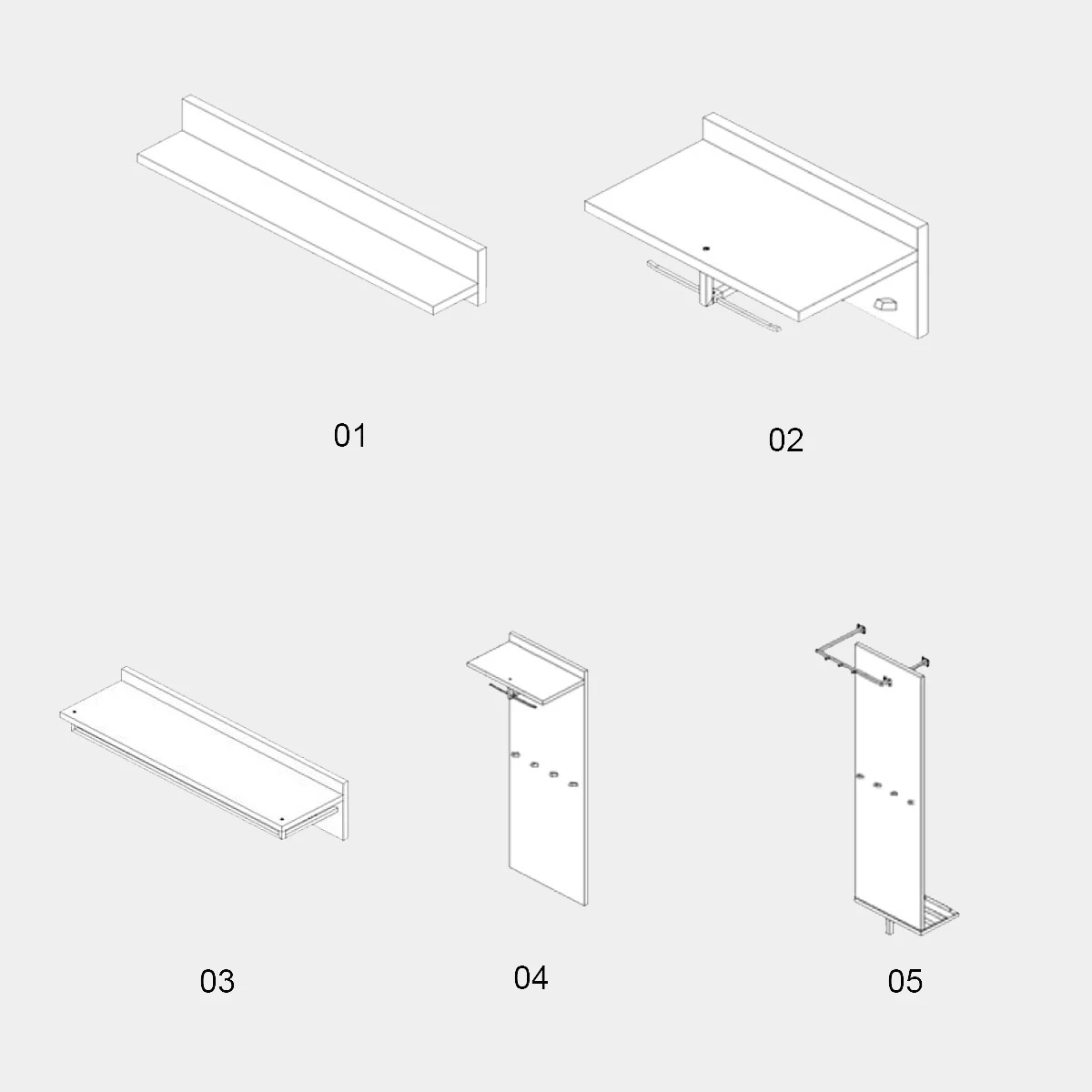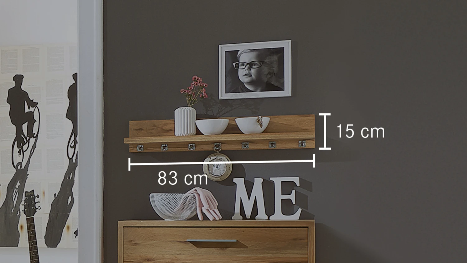 Wandpaneel mit Ablagefläche und 7 praktischen Haken
