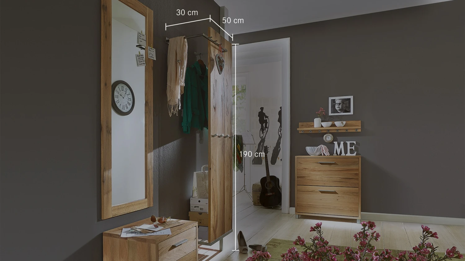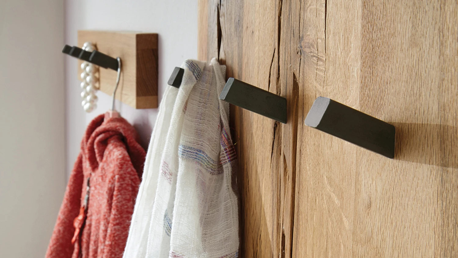 - edle Metallhaken und markante Kleiderstangen sind perfekt integriert