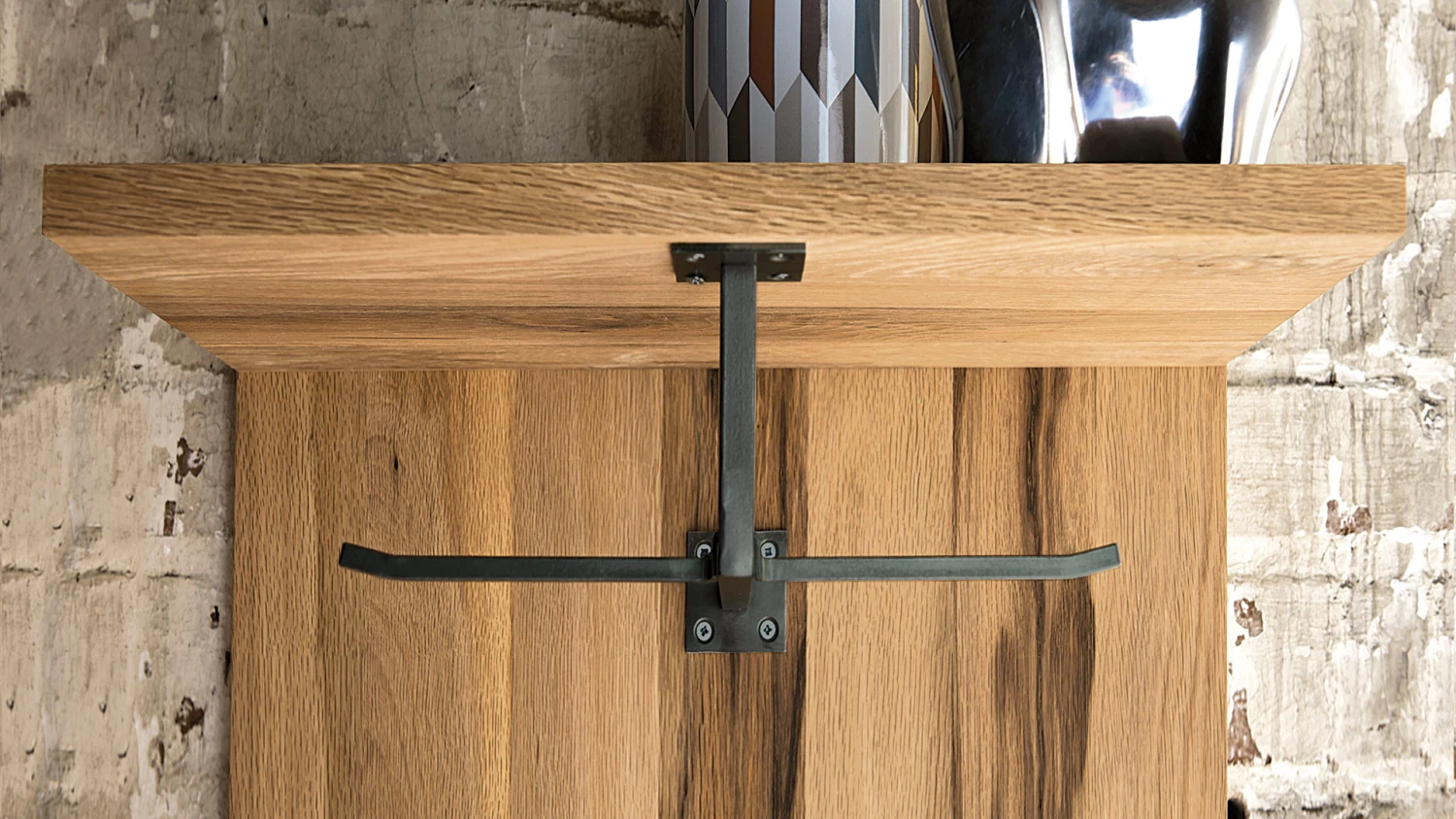 - Unregelmäßigkeiten der Oberfläche wie Astlöcher, Wuchsrisse und SprĂĽnge sind charakteristisch fĂĽr dieses Möbel – diese natĂĽrlichen Effekte werden von erfahrenen Schreinern gekonnt nachgearbeitet und damit verstärkt