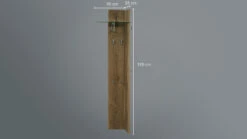 Garderobenpaneel mit 1 Hutboden aus Glas, unterhalb 1 Kleiderstange aus Metall, 2 groĂźe und 2 kleine Metall-Haken