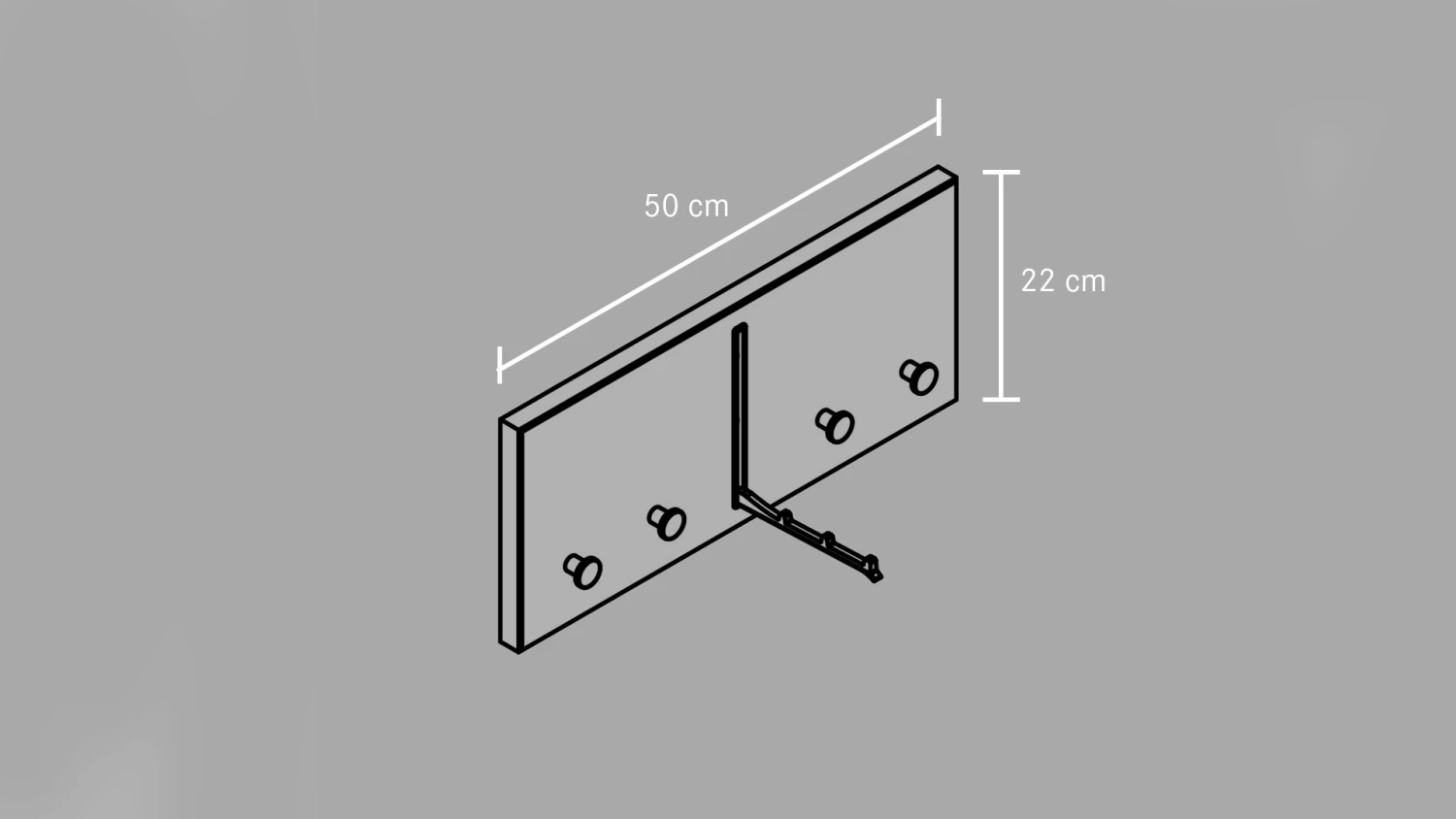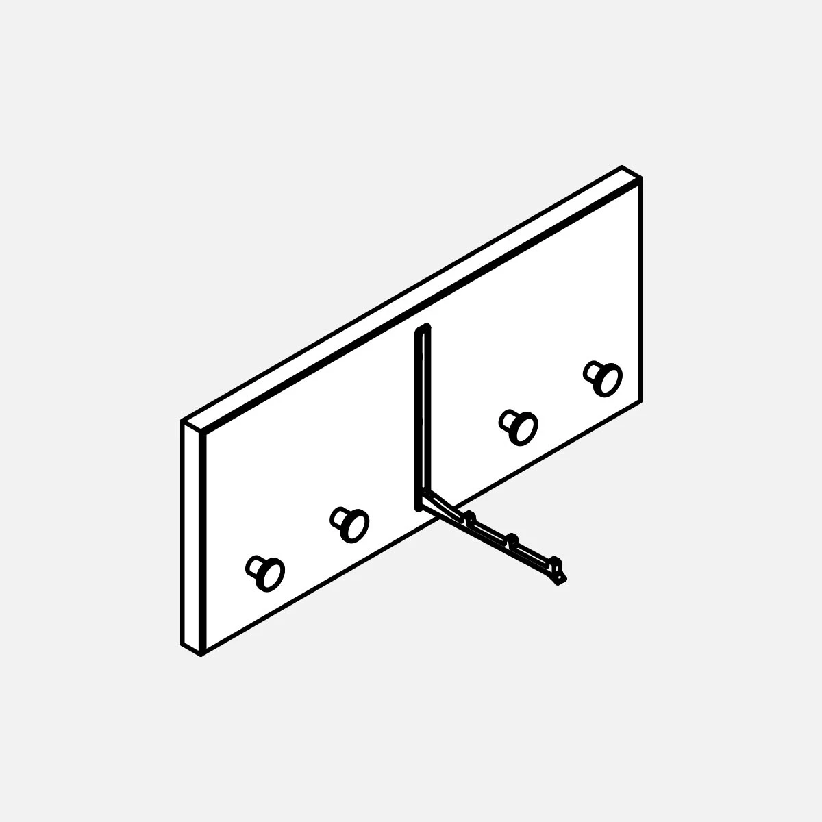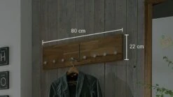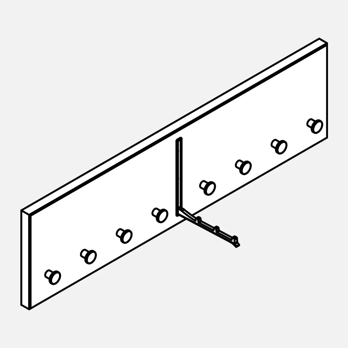 mit 4 Aluminium-Knöpfen und 1 klappbaren Kleiderbügelhalter in der Mitte - Garderobe lang – Maßgrafik anzeigen