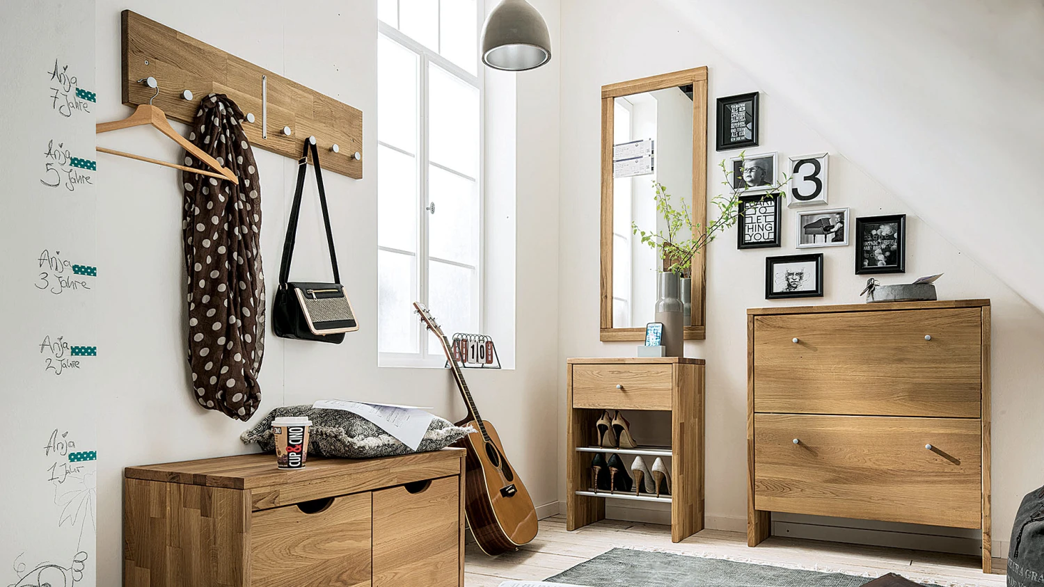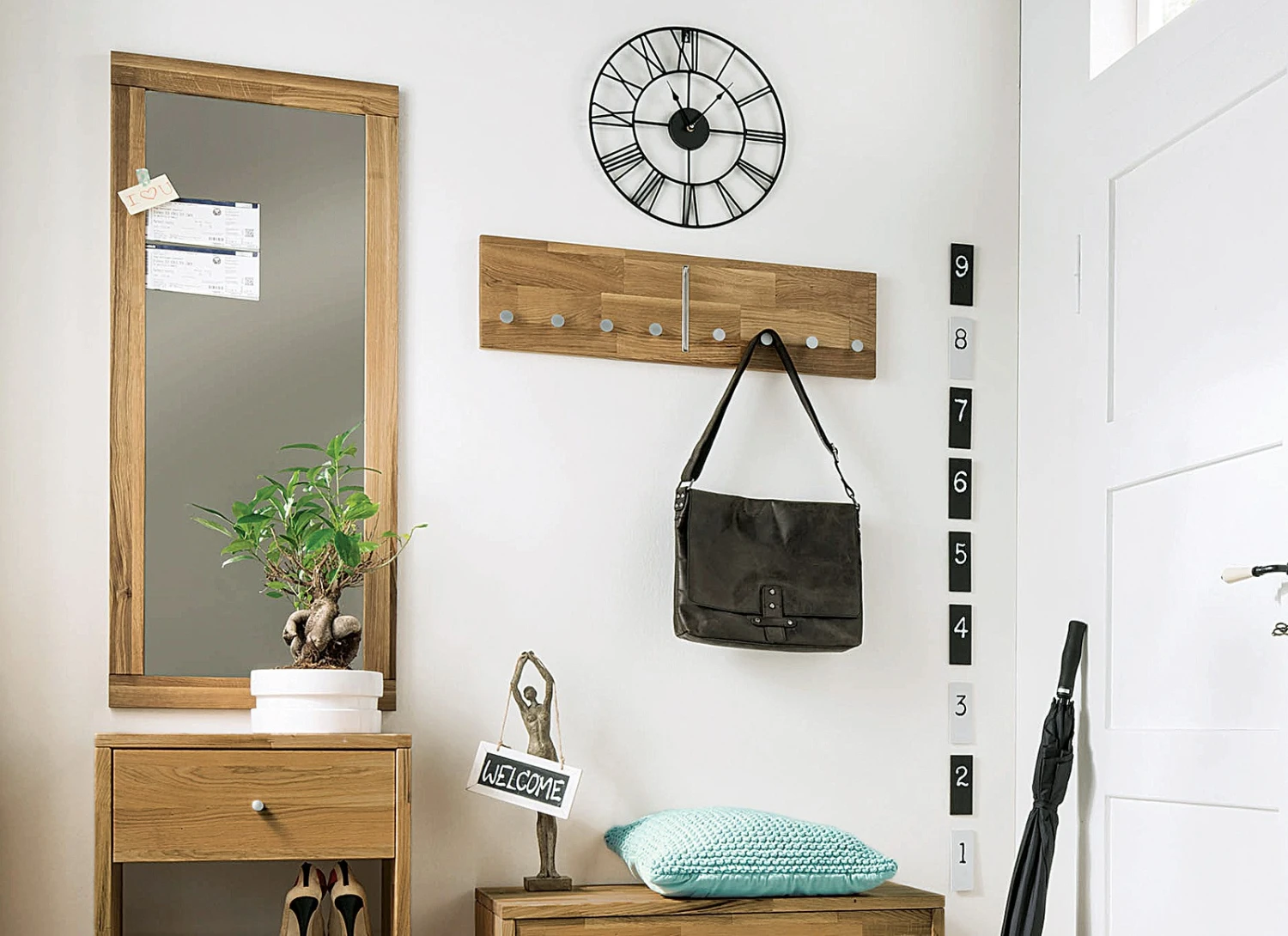 - Kleiderbügelhalter – eingeklappt ein raffinierter Blickfang, ausgeklappt praktischer Helfer