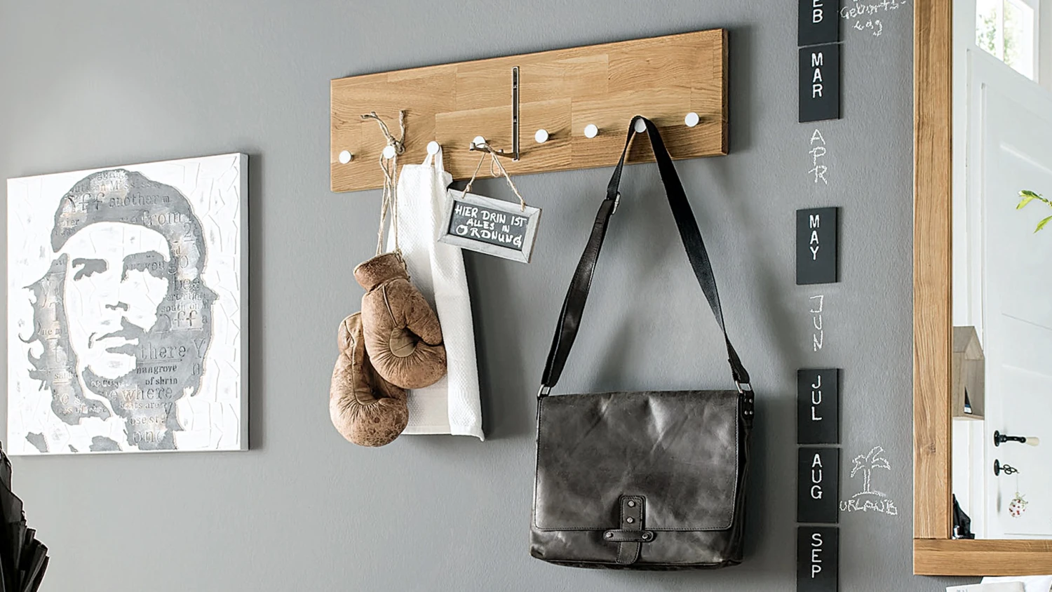 mit 8 Aluminium-Knöpfen und 1 klappbaren Kleiderbügelhalter in der Mitte - 1x Garderobenbank