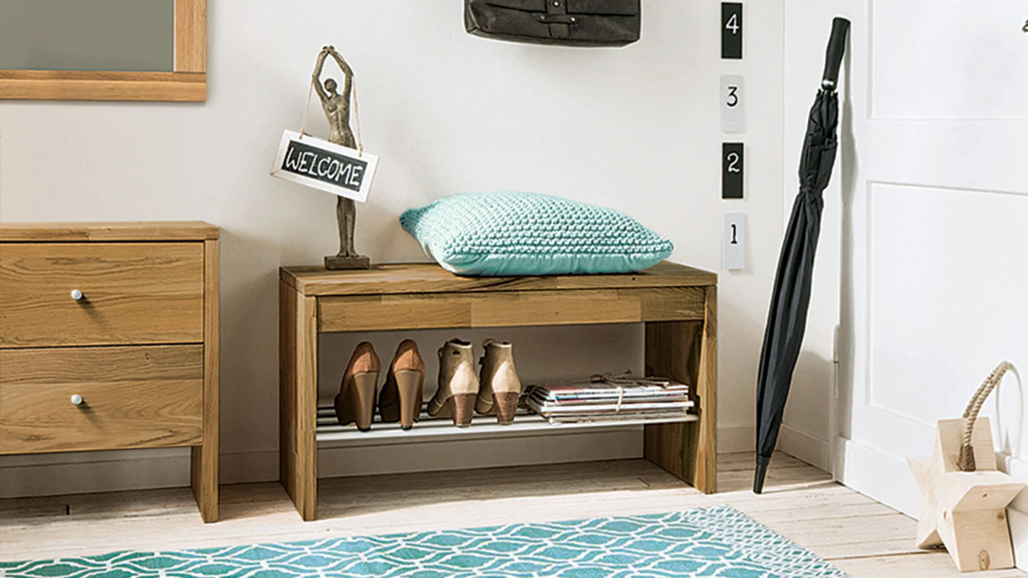 mit Schuhrost aus 4 Aluminium-Stangen fĂĽr bis zu 4 Paar Schuhe - 1x Kommode