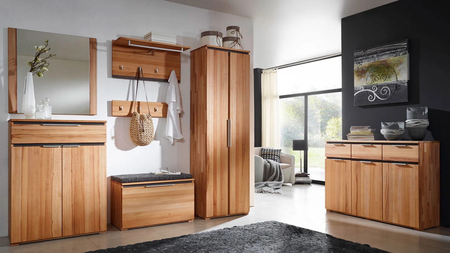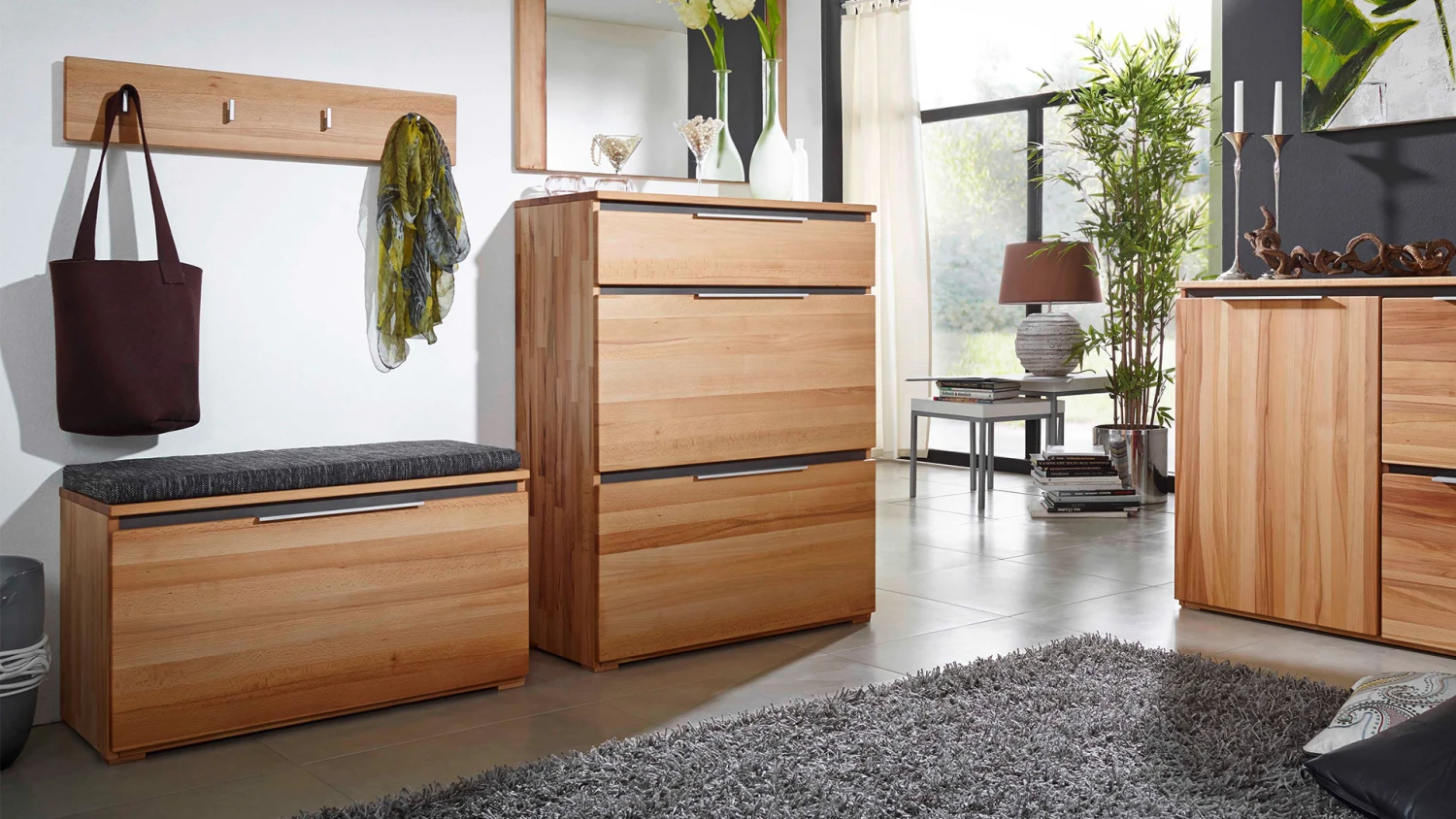 - geradlinige, stabverleimte Front, die der beschwingt gemaserten Kernbuche die perfekte BĂĽhne bietet