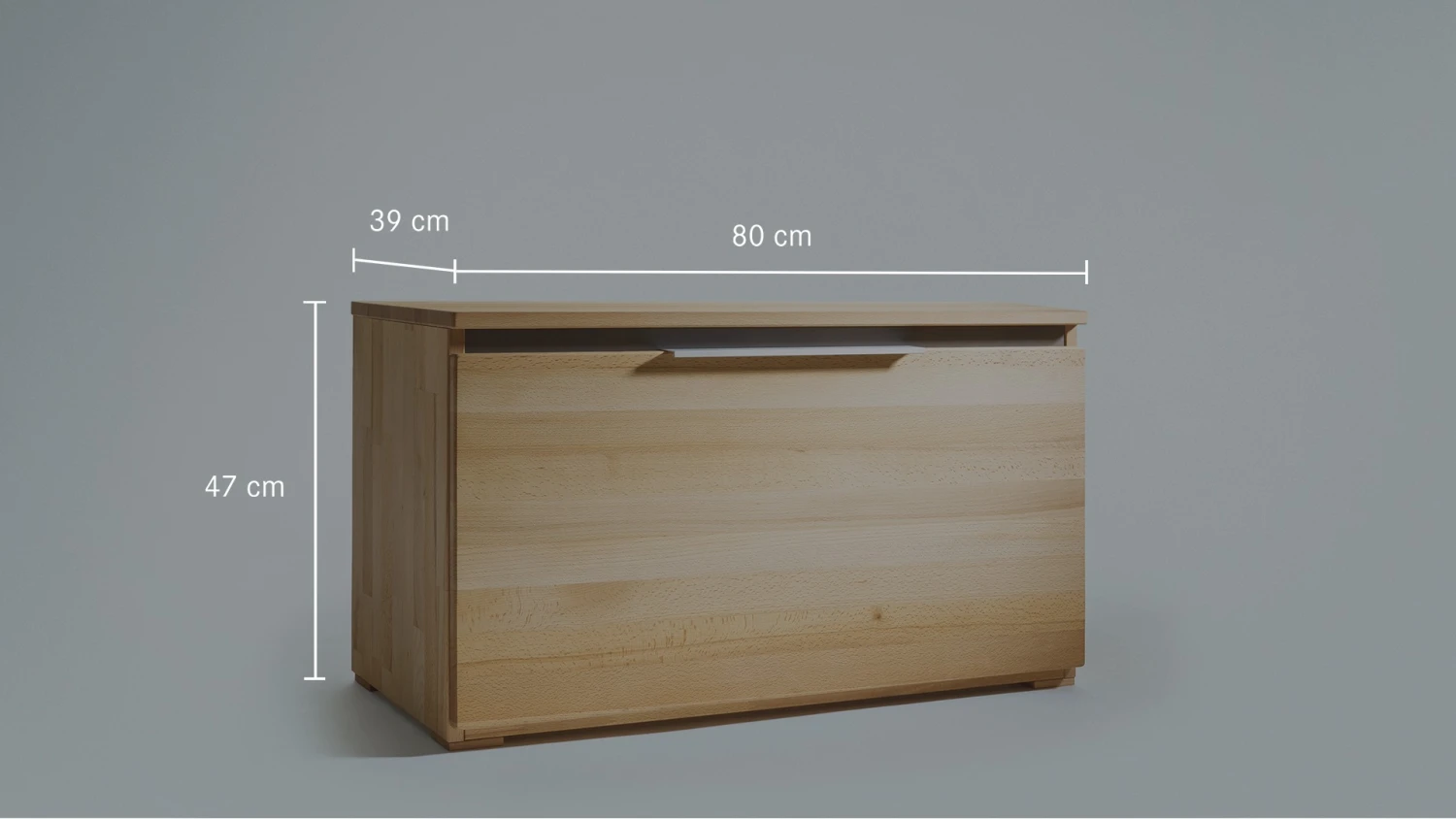 - aus massivem Kernbuchenholz, Fronten aufwändig stabverleimt mit durchgehenden Lamellen, Korpus parkettverleimt