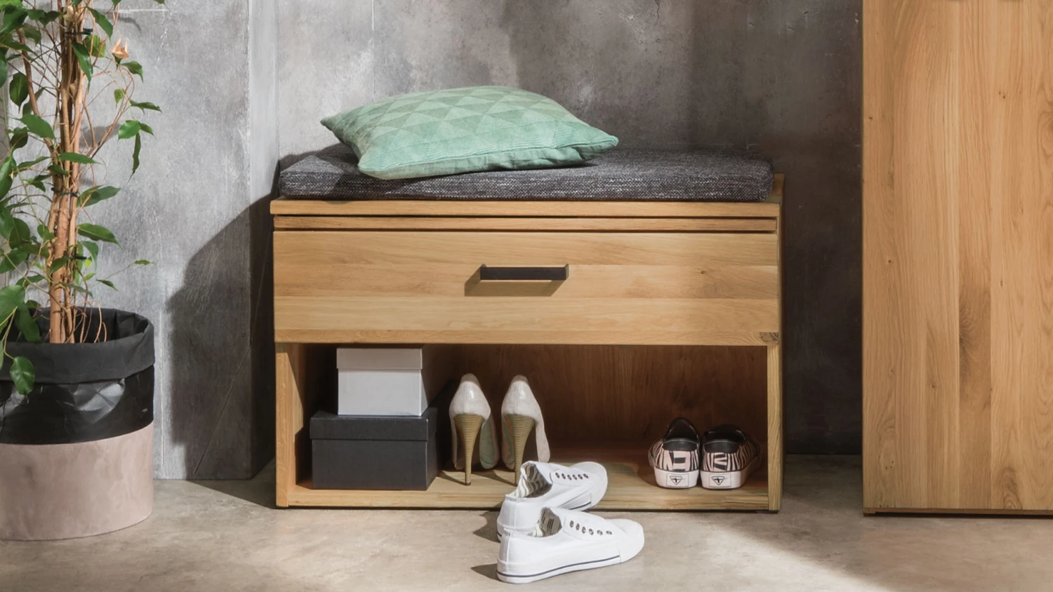 - moderne und geradlinige Schuhablagebank mit komfortabler Sitzhöhe und Sitztiefe