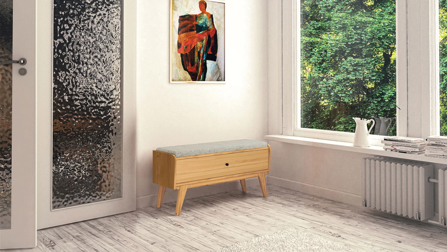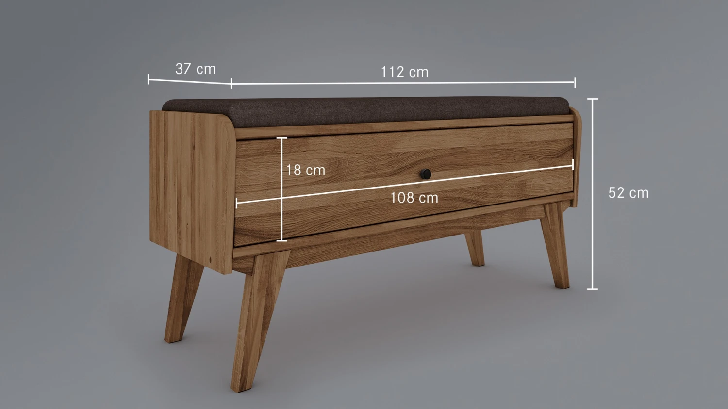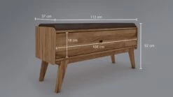 Kommodenteil mit 2 Schubladen links, gepolsterte Sitzfläche rechts