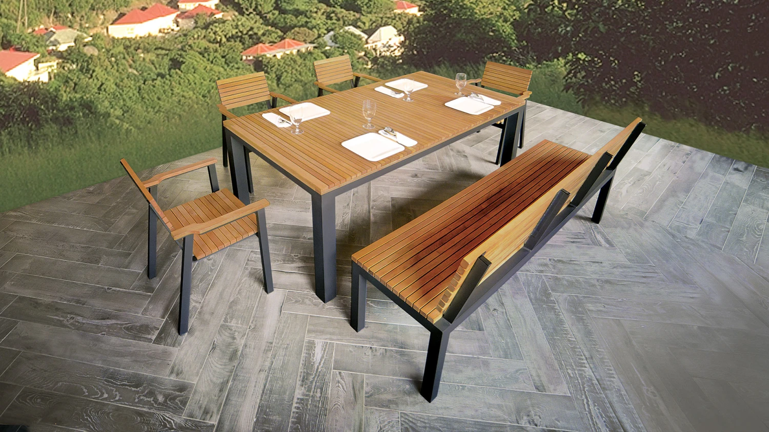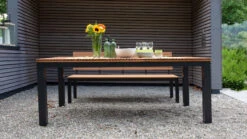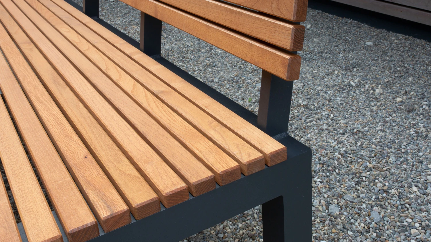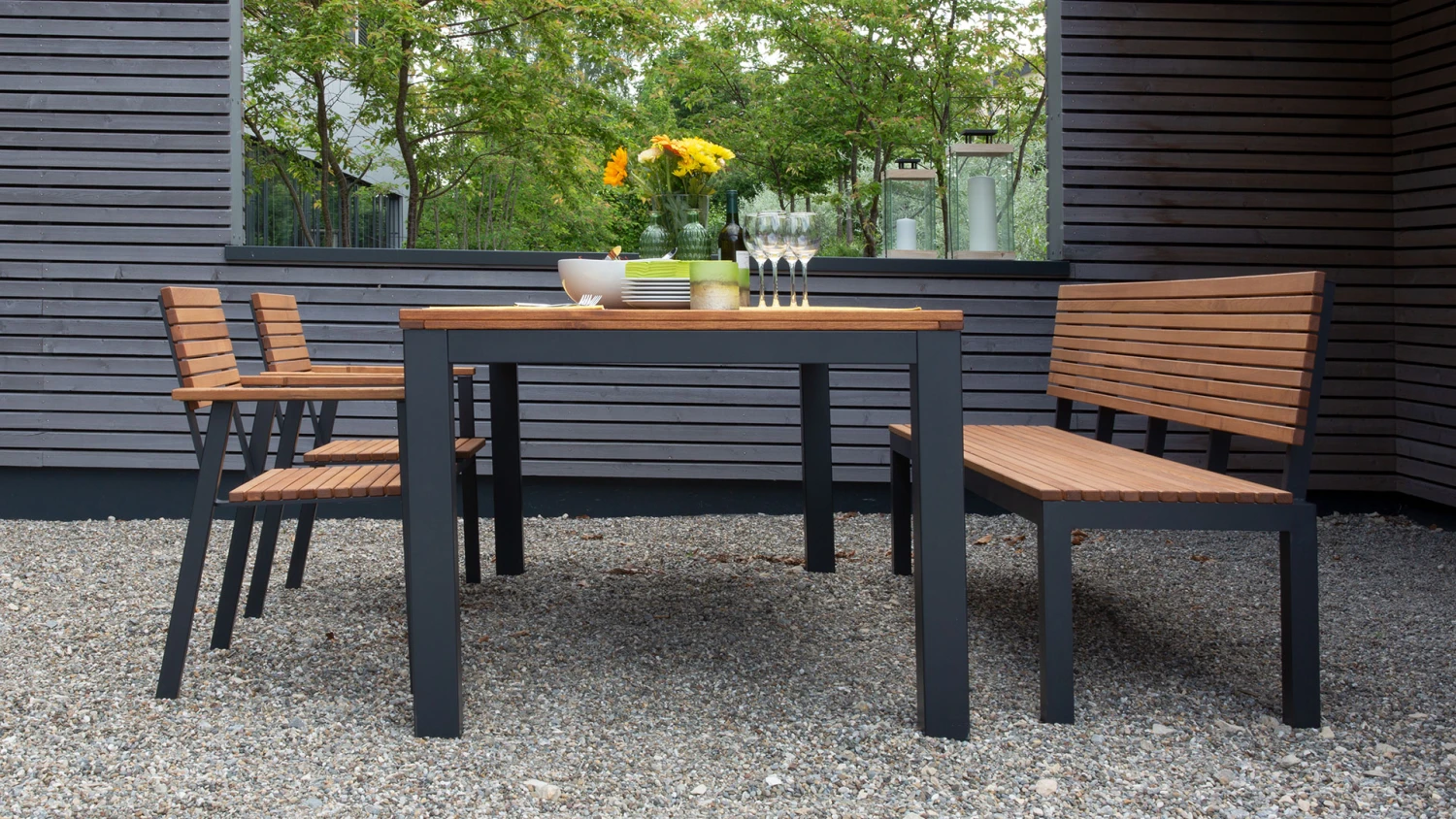 - moderner Kontrast – warmes Robinienholz trifft auf pulverbeschichtetes Aluminium