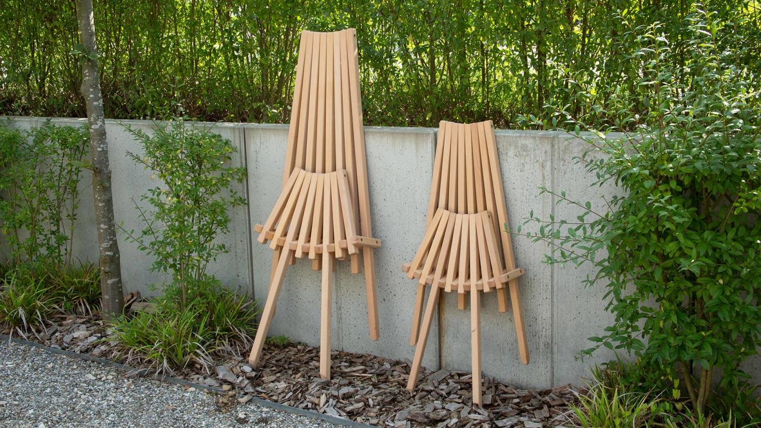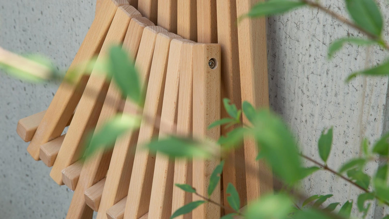 - moderner Stuhl aus sorgfältig gesofteten Lamellen in raffinierter Fächeroptik