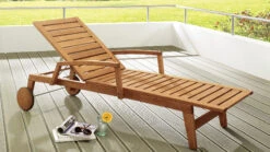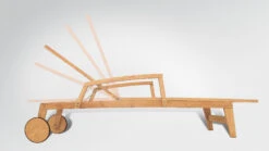 - Lehne 6-stufig verstellbar – Lehnenverstellung durch stabiles Metallgestänge, das in beidseitigen Rasterschienen aus Holz läuft