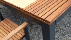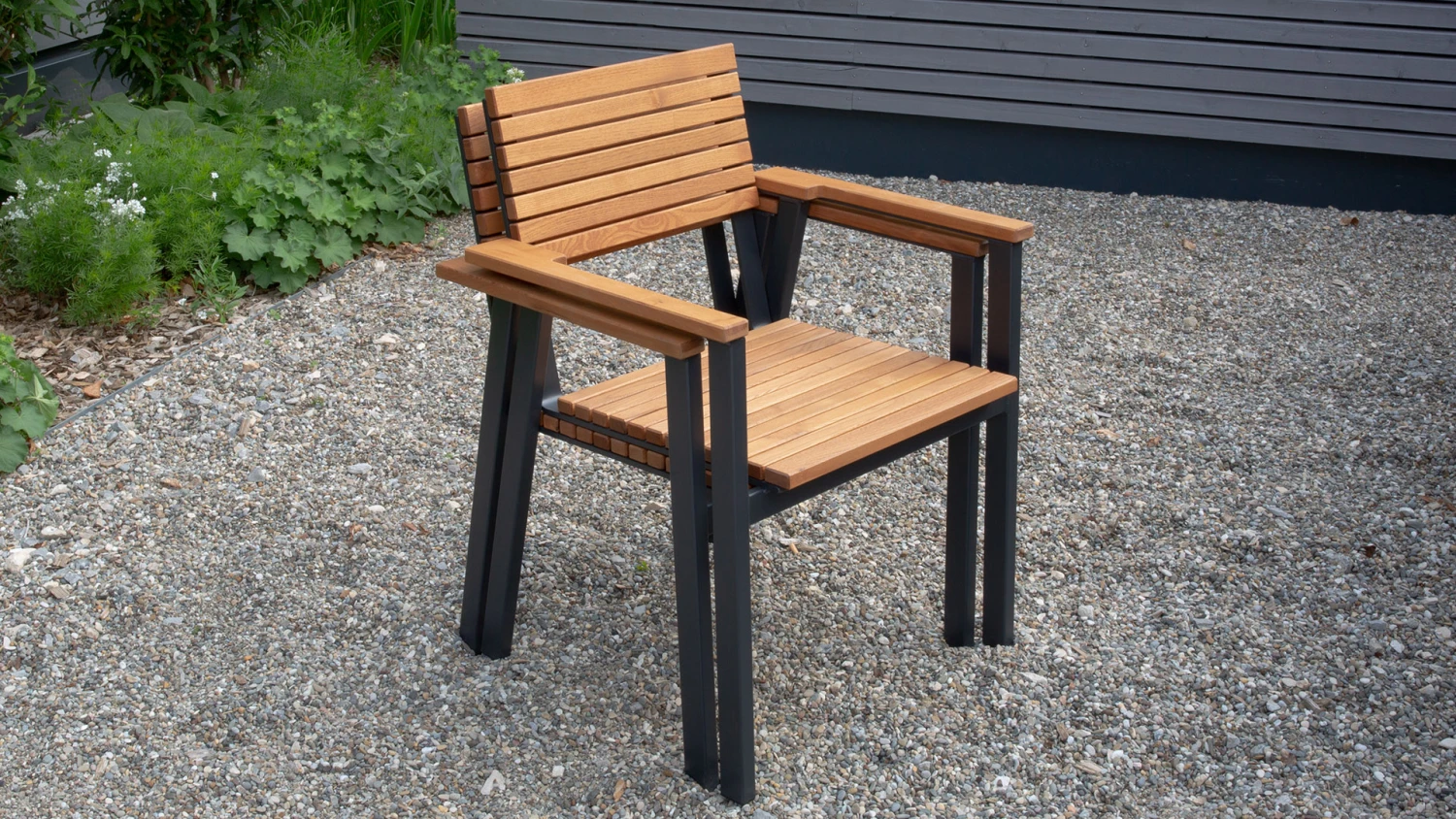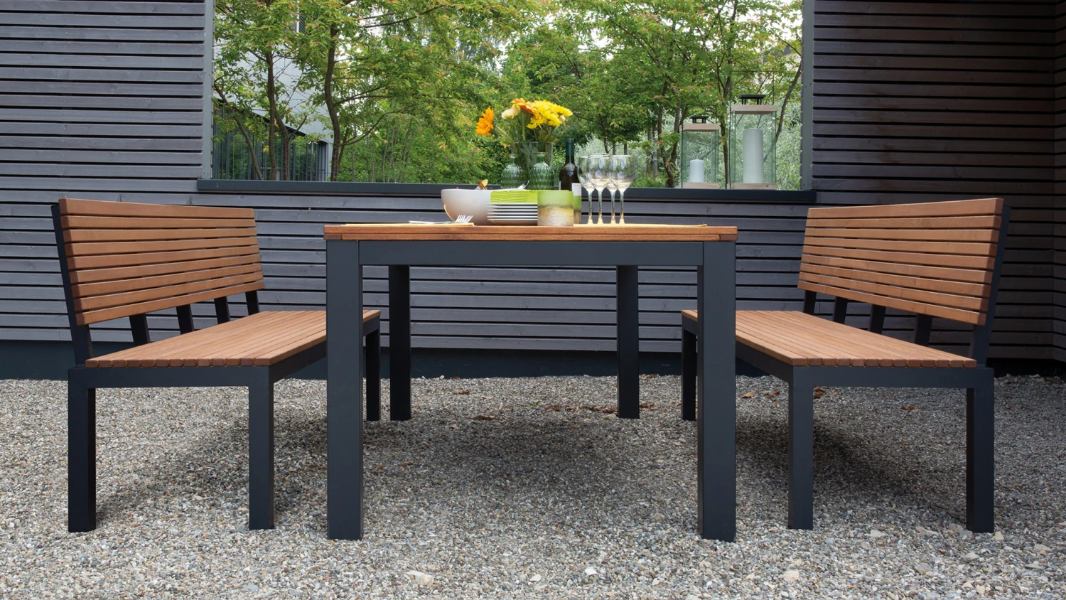 - moderner Kontrast – warmes Robinienholz trifft auf pulverbeschichtetes Aluminium