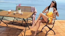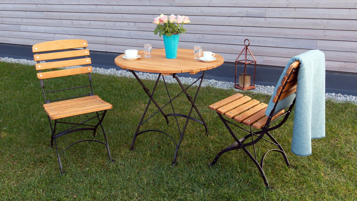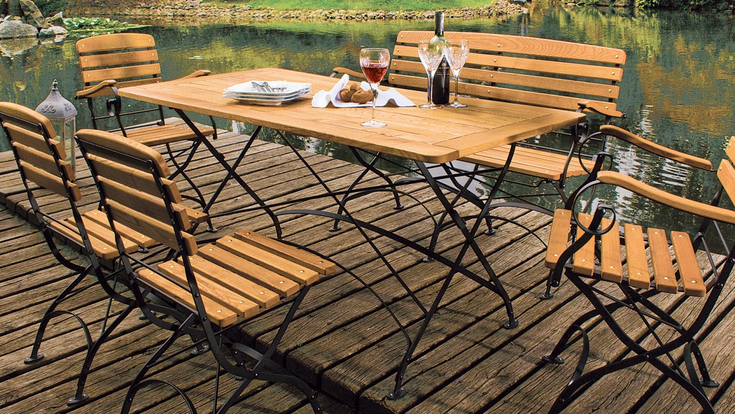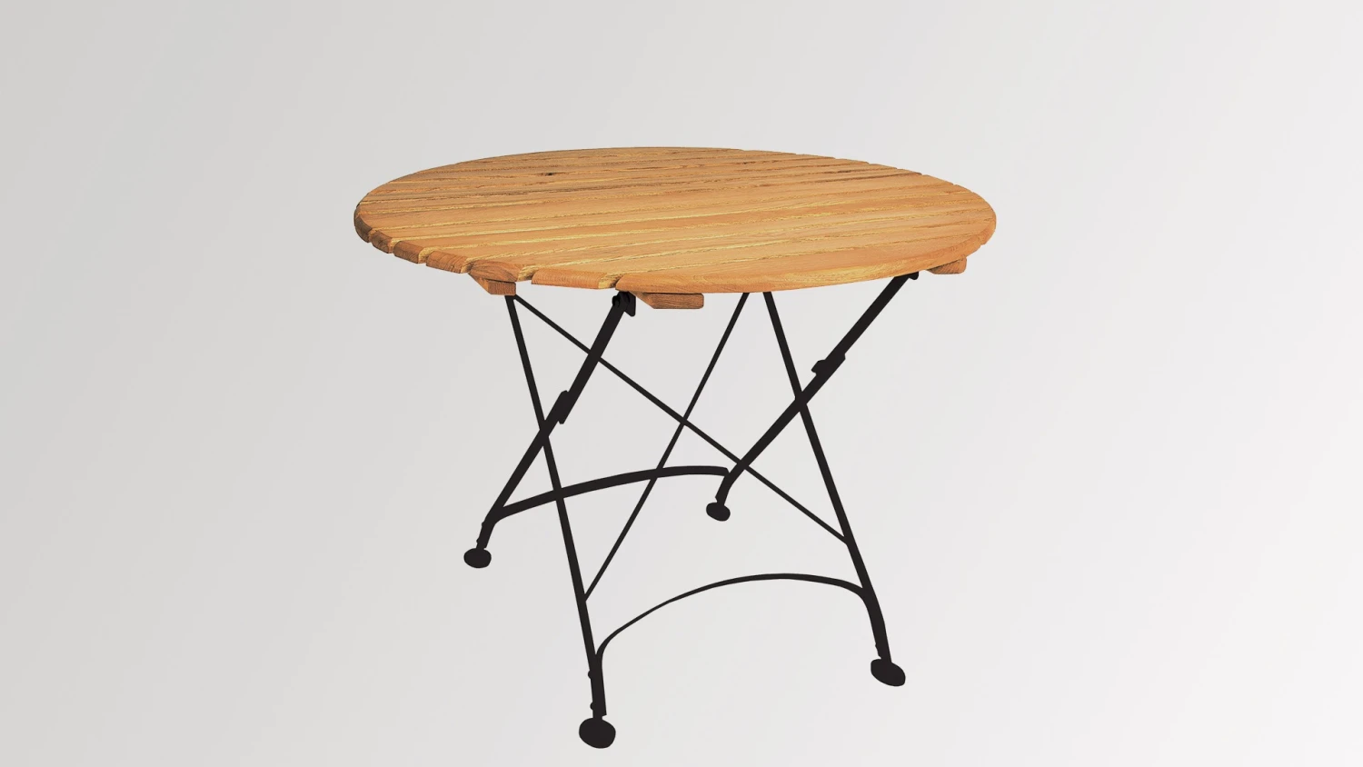 Lamellen-Tischplatte mit umlaufendem Rand und Querstrebe in der Tischmitte