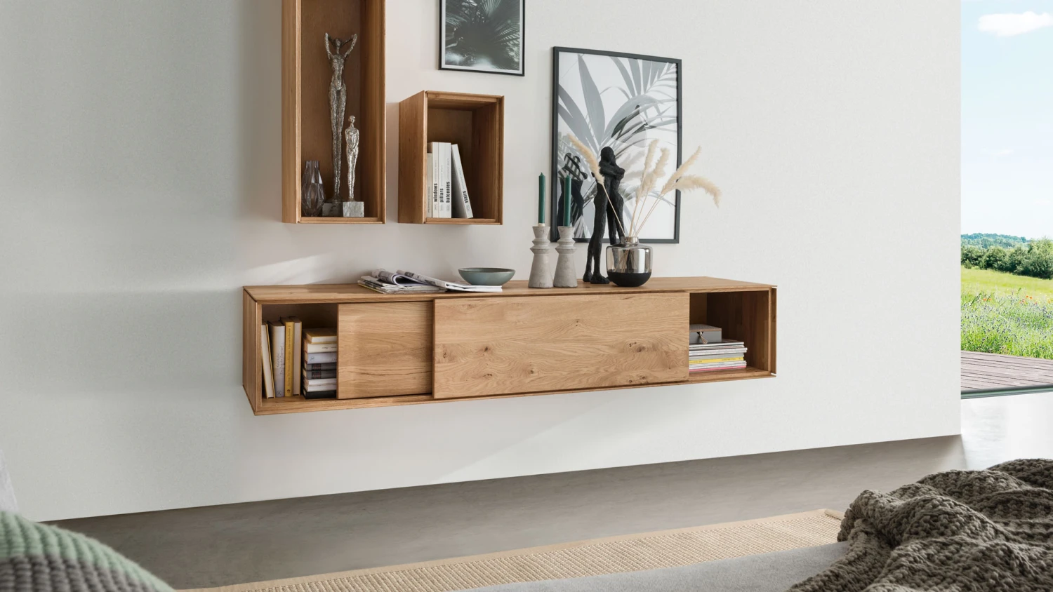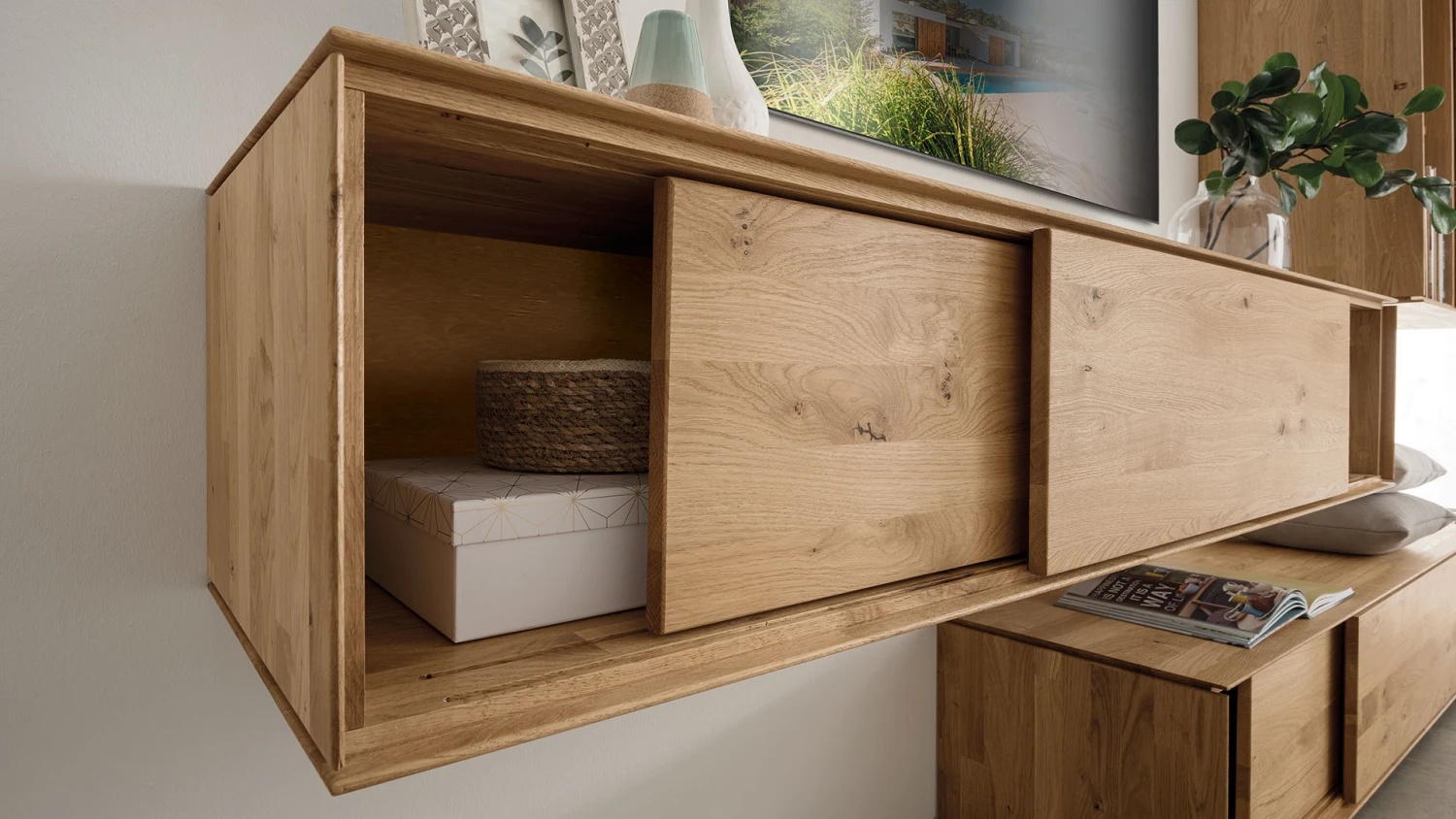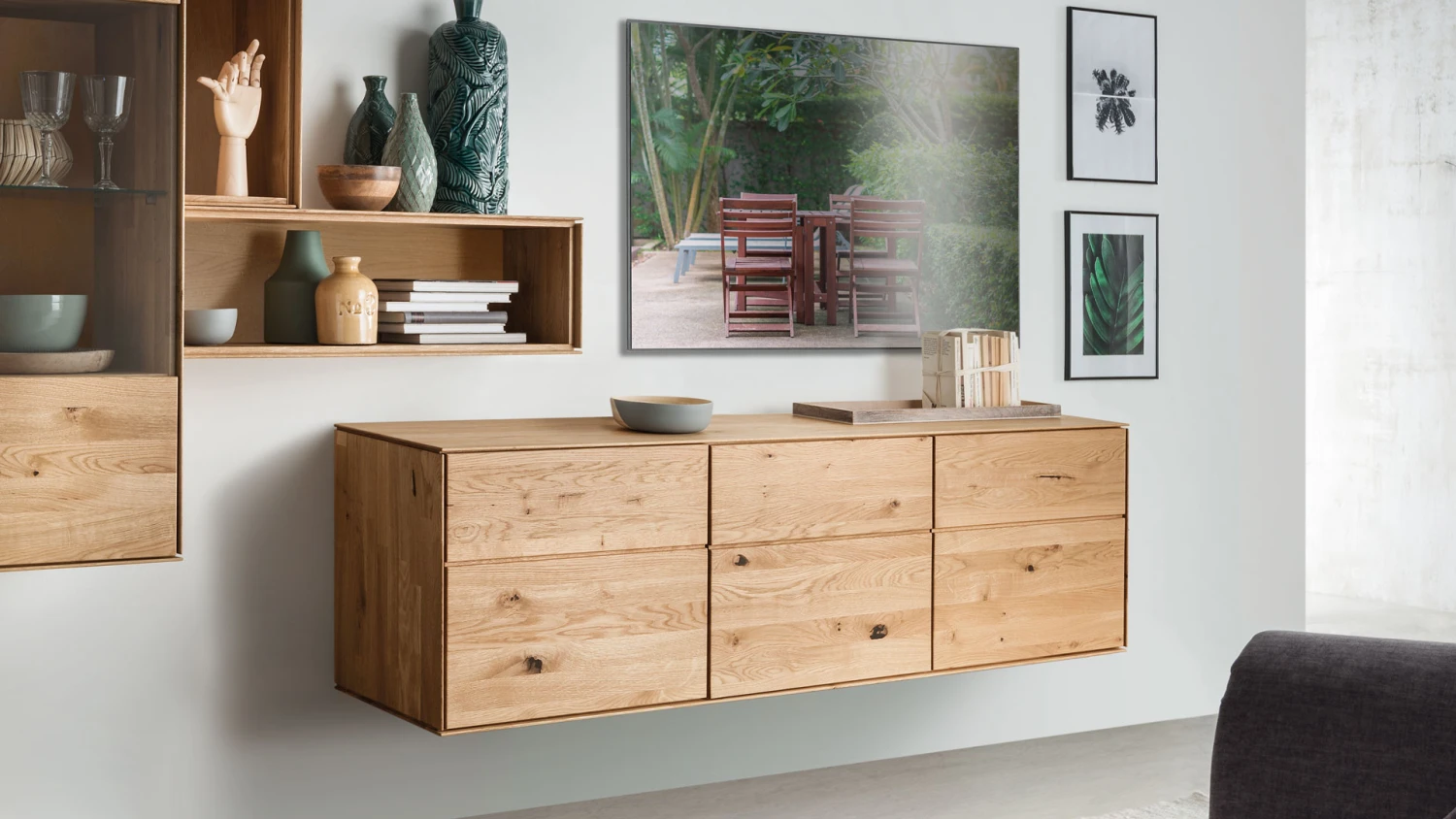 - modernes Hängeboard in reduziertem Design – Verarbeitung und Holzcharakter stehen im Vordergrund