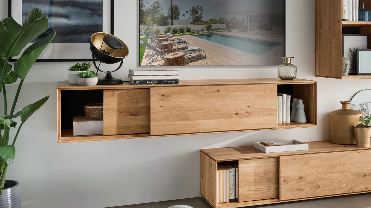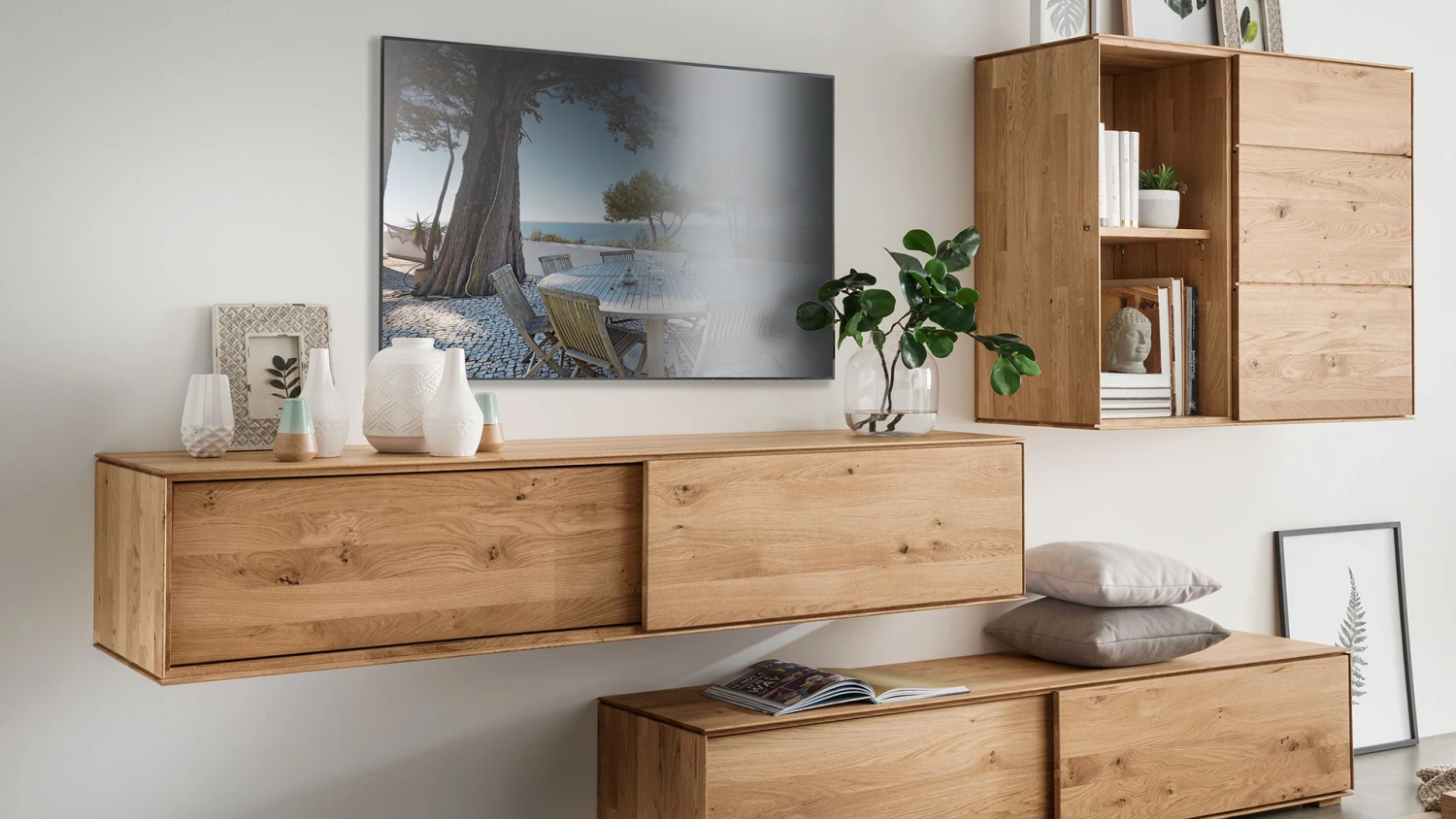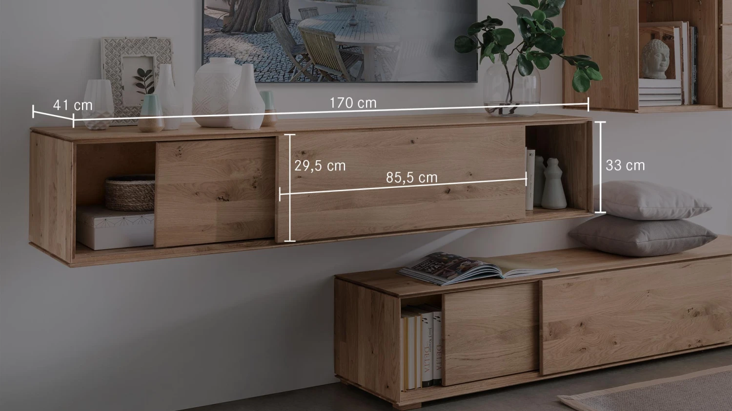 - modernes Hängeboard in reduziertem Design – Verarbeitung und Holzcharakter stehen im Vordergrund
