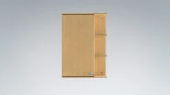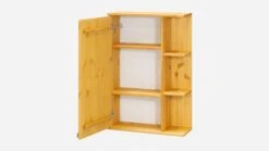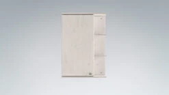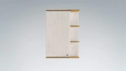 - mit 1 Holztür, dahinter 2 Fachböden, rechts davon Regalteil mit 2 Fachböden