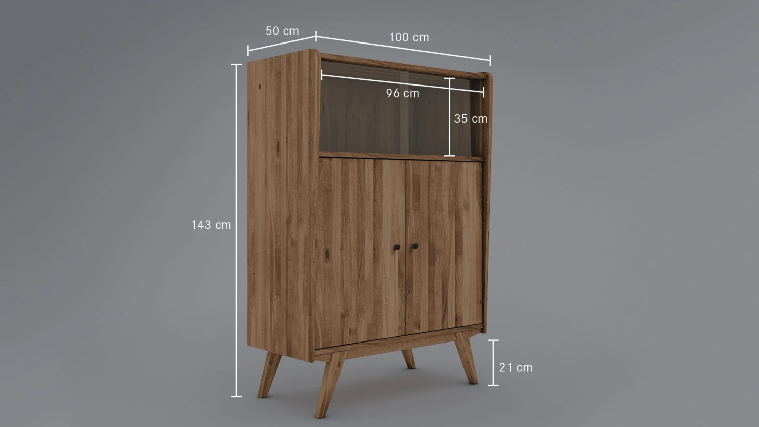 unten 2 HolztĂĽren, dahinter je 1 schmaler Holz-Fachboden, Mittelwand