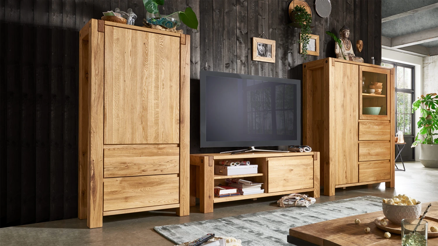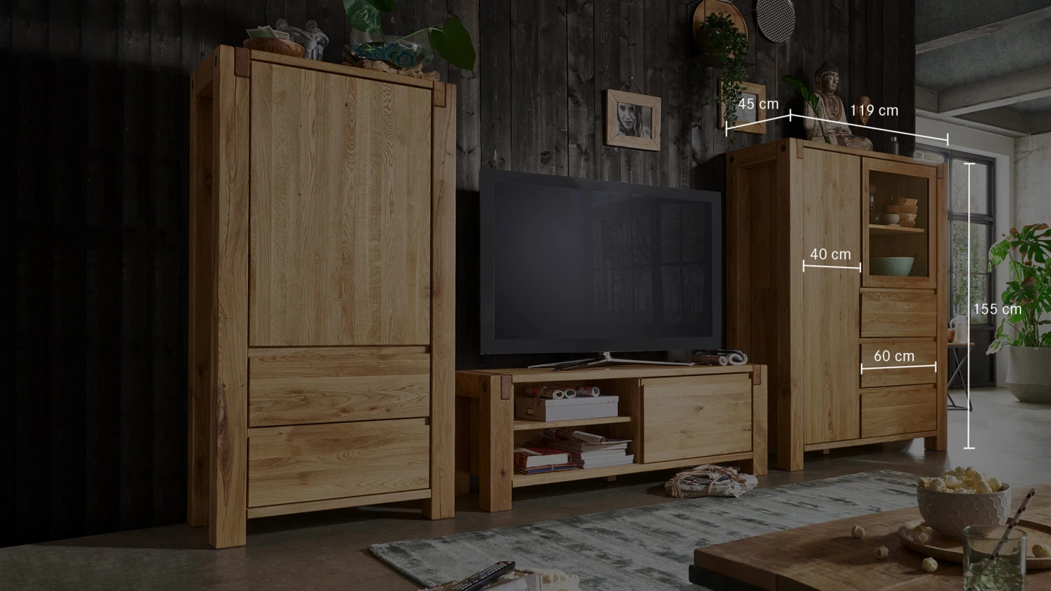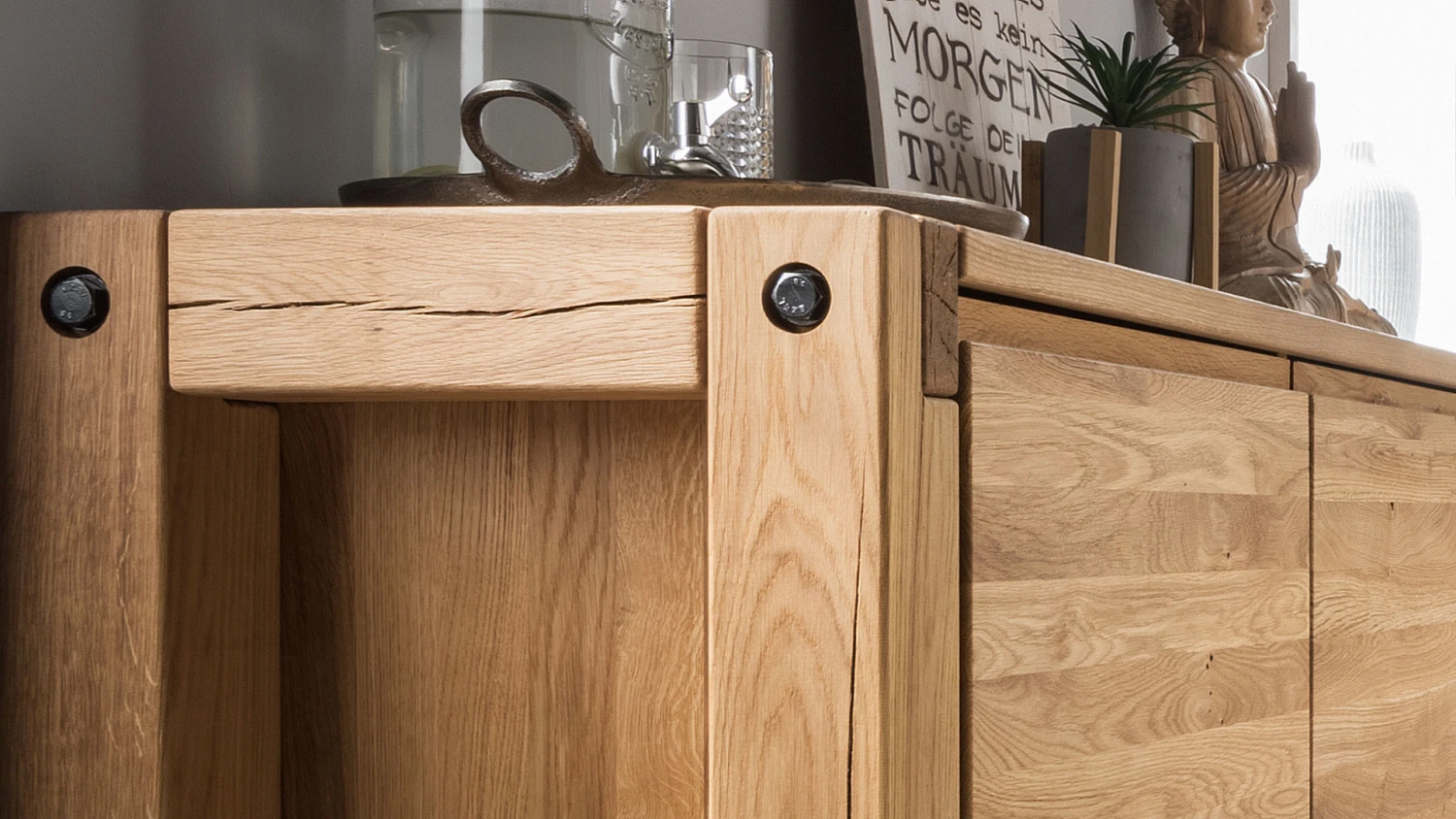 - aus massivem Wildeichenholz, aufwändig stabverleimt mit durchgehenden Lamellen