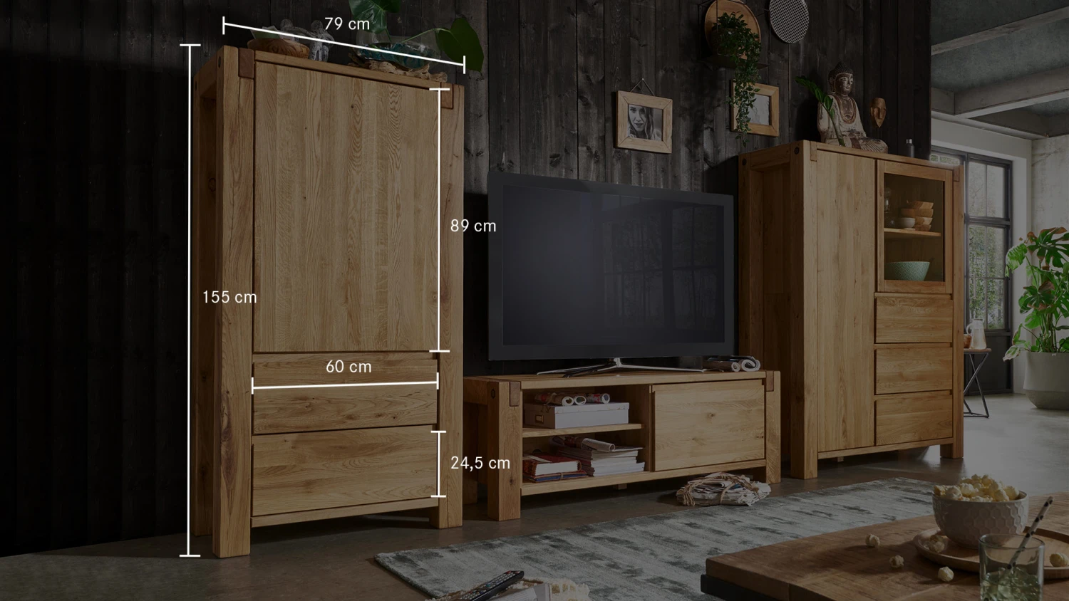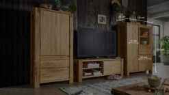 - präzise gearbeitetes, dominantes Highboard mit oder ohne Glaseinsatz in den Türen
