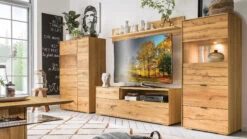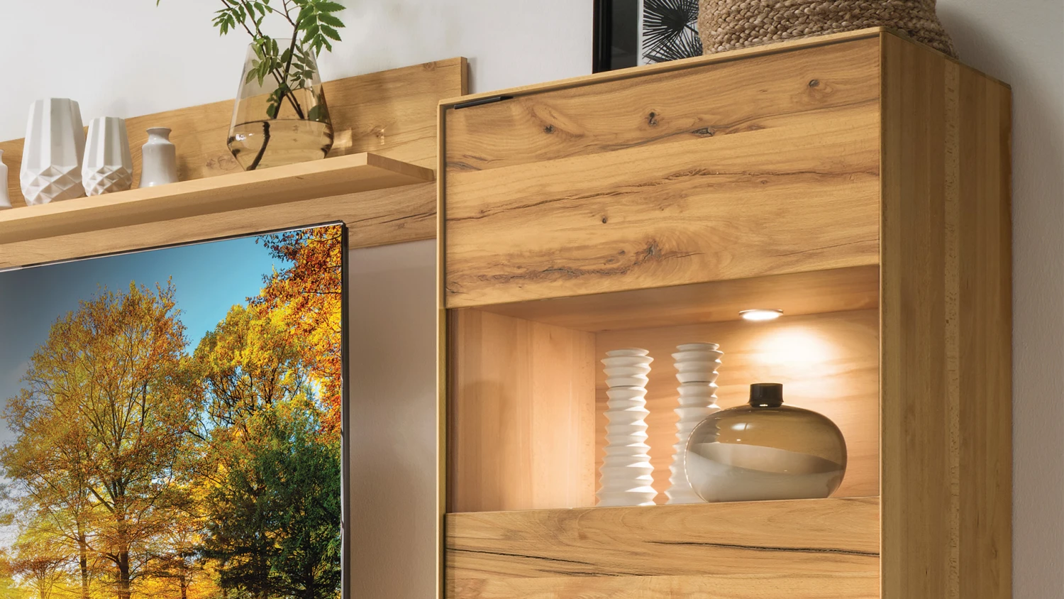 - besonders eindrucksvoll in Holzart Wildkernbuche – sorgfältig selektiertes Kernbuchenholz mit sehr lebhafter Maserung, Rissen und Ă„sten verleiht „Senera“ einen extravaganten Charakter